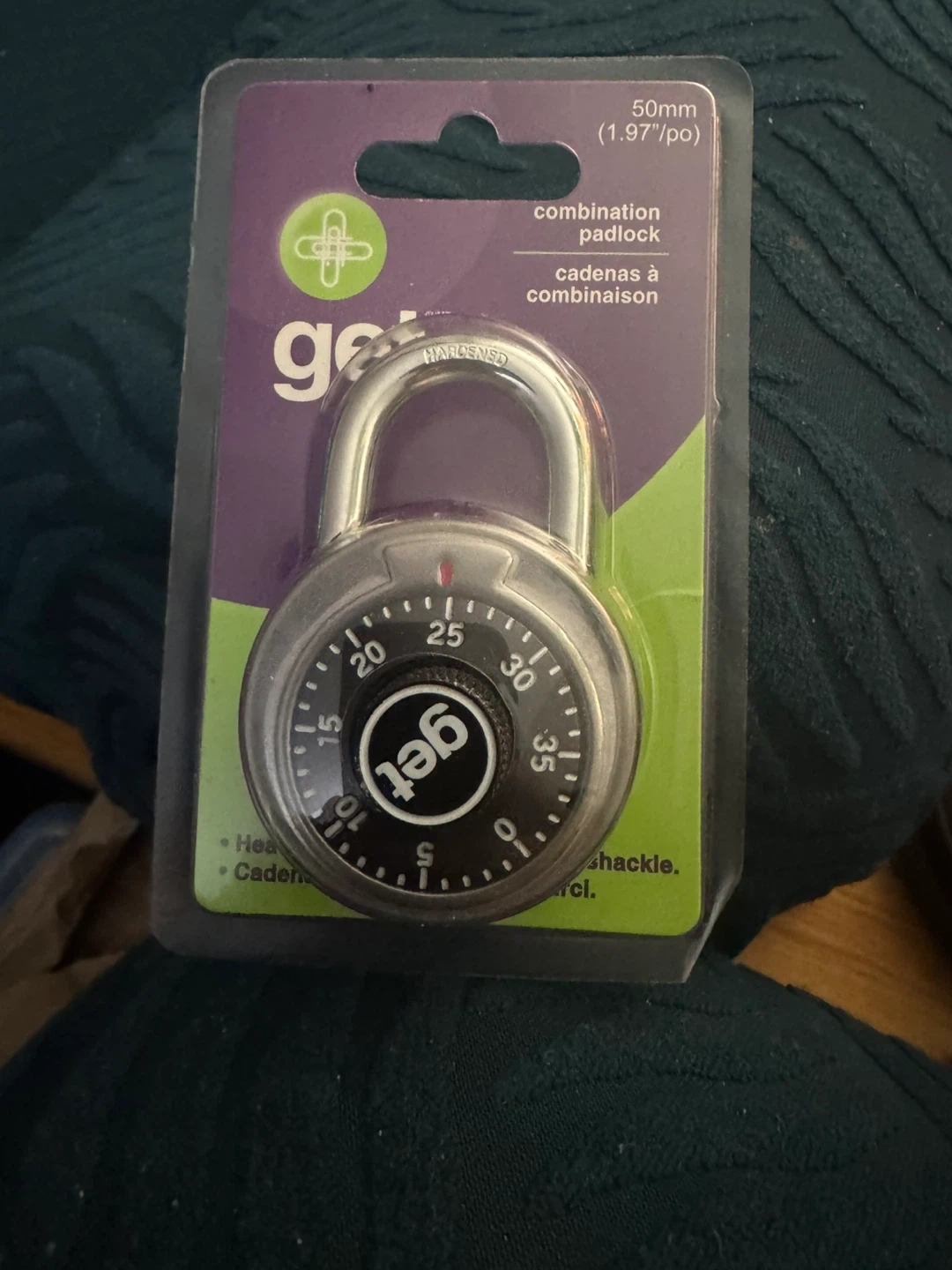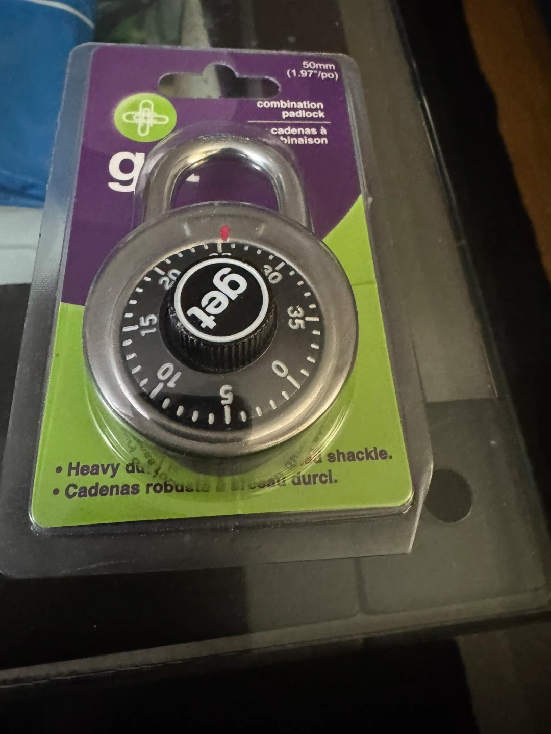 This is a Get brand 50mm combination padlock. It's designed for security and convenience. The padlock has a heavy-duty shackle.