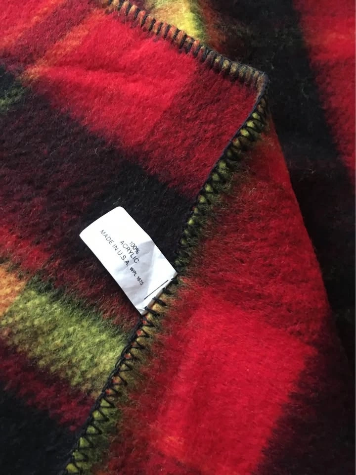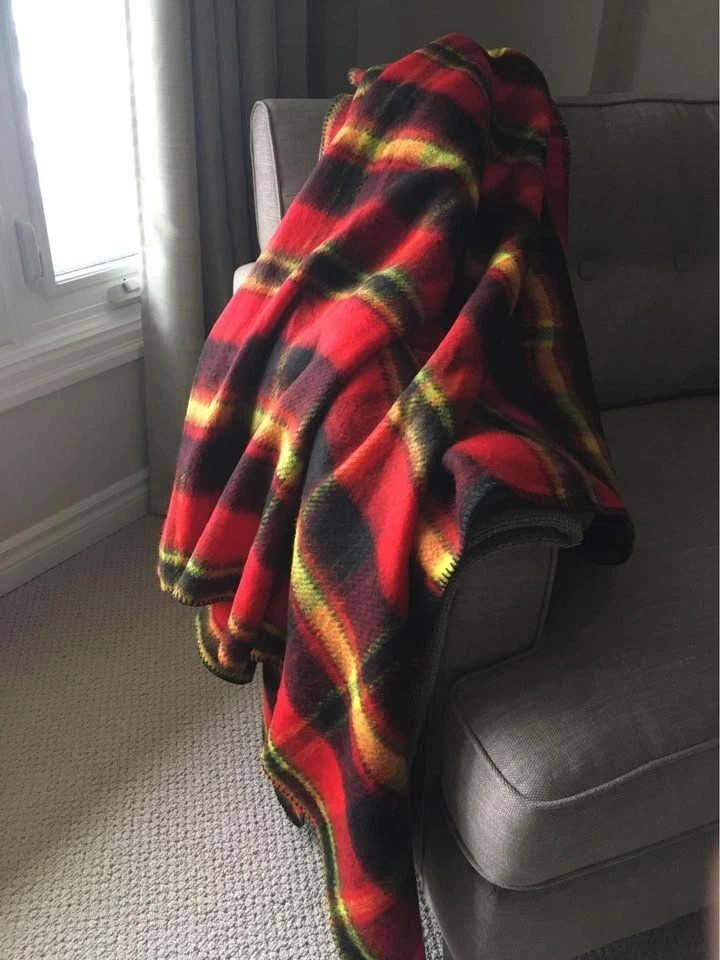 Brand New with Tag Soft and Warm 100% Acrylic Throw Blanket 73-1/4” X 44”. Bright Red, black and yellow classic plaid design. Smoke and pet free home. Please see photos. Cash only please.