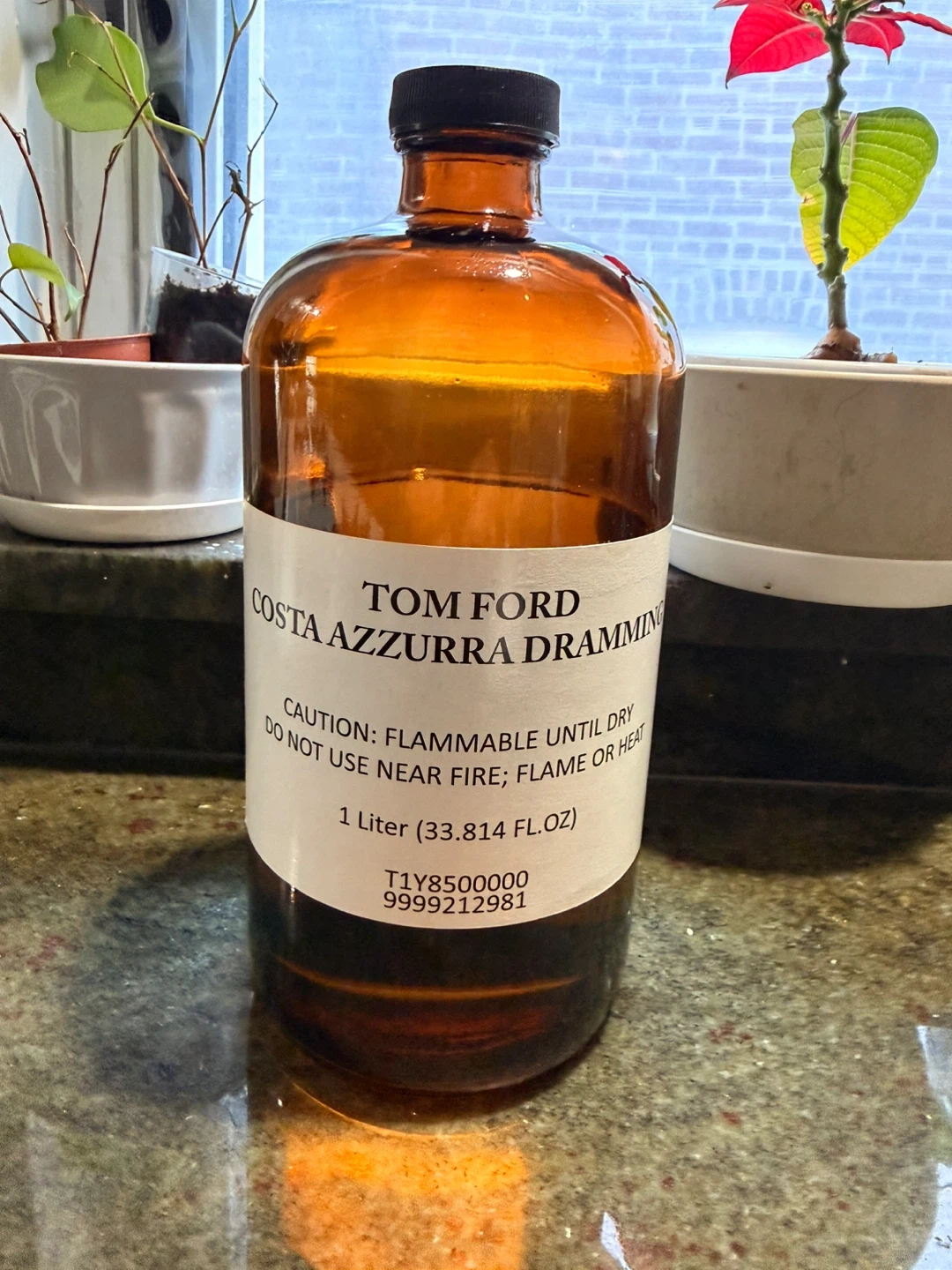 This is a 1 liter bottle of Tom Ford Costa Azzurra Dramming. It's flammable until dry, so do not use near fire, flame, or heat! This size is great for a large collection or for use in a spa setting. 2/3 full.