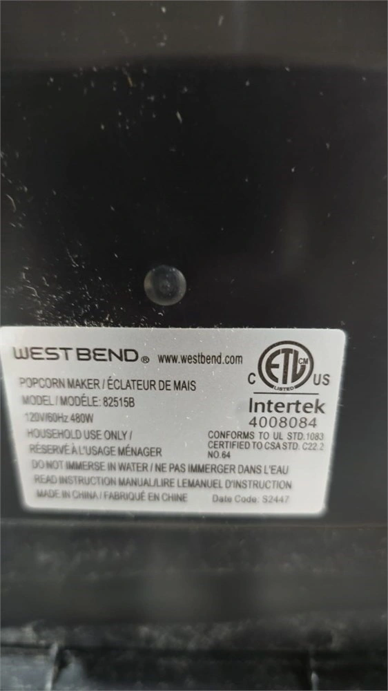 West Bend 82515B Popcorn Machine - Like New!