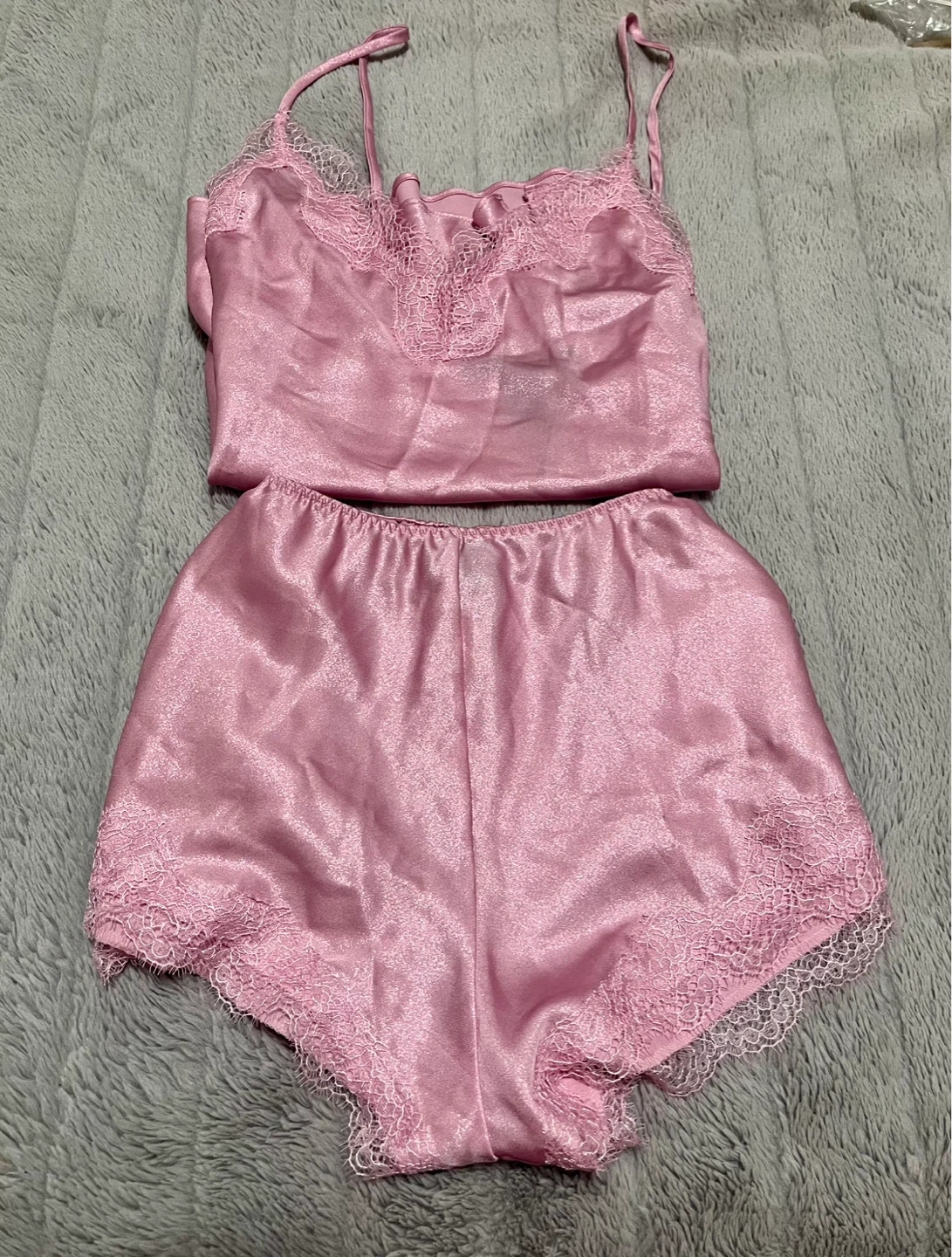 Victoria's Secret Pink Lace Trim Cami & Shorts Pajama Set Small