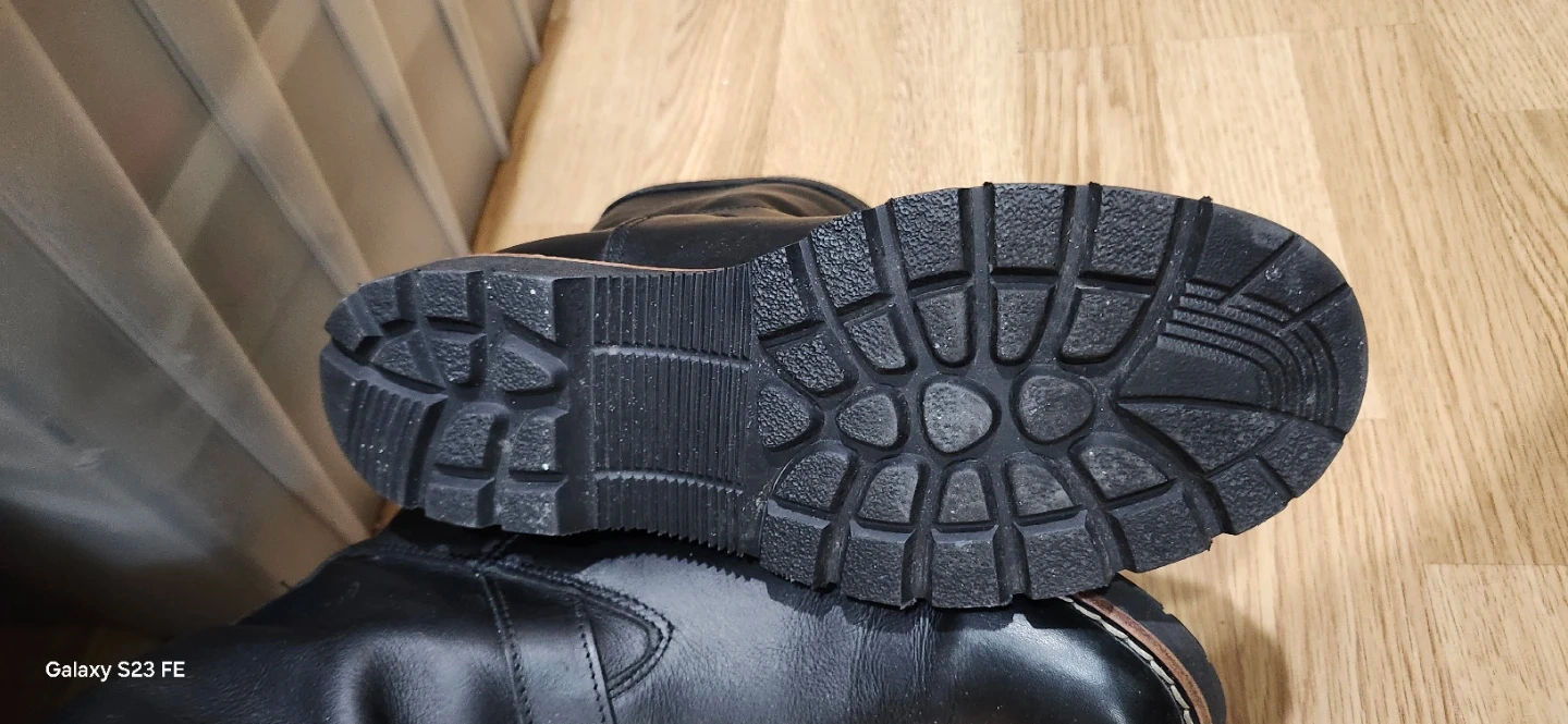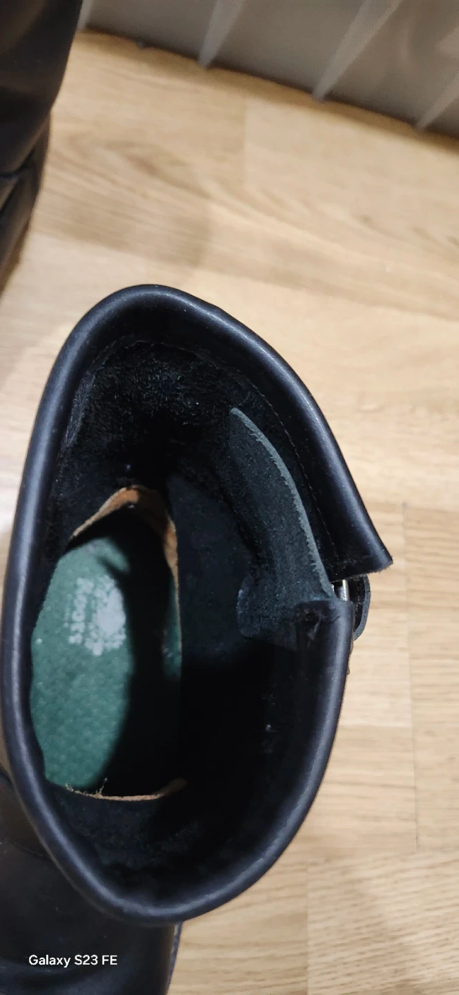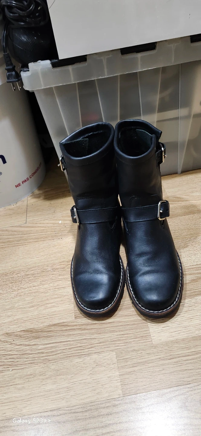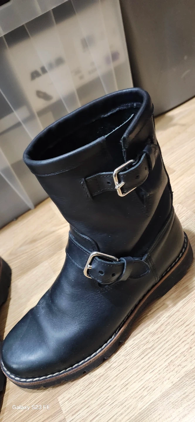 These are black leather boots with buckle accents. They have a sturdy sole and a comfortable interior. Great for everyday wear! Price firm only cash only pickup no delivery 801 O'Connor drive outside TD Canada Trust bank door East York.