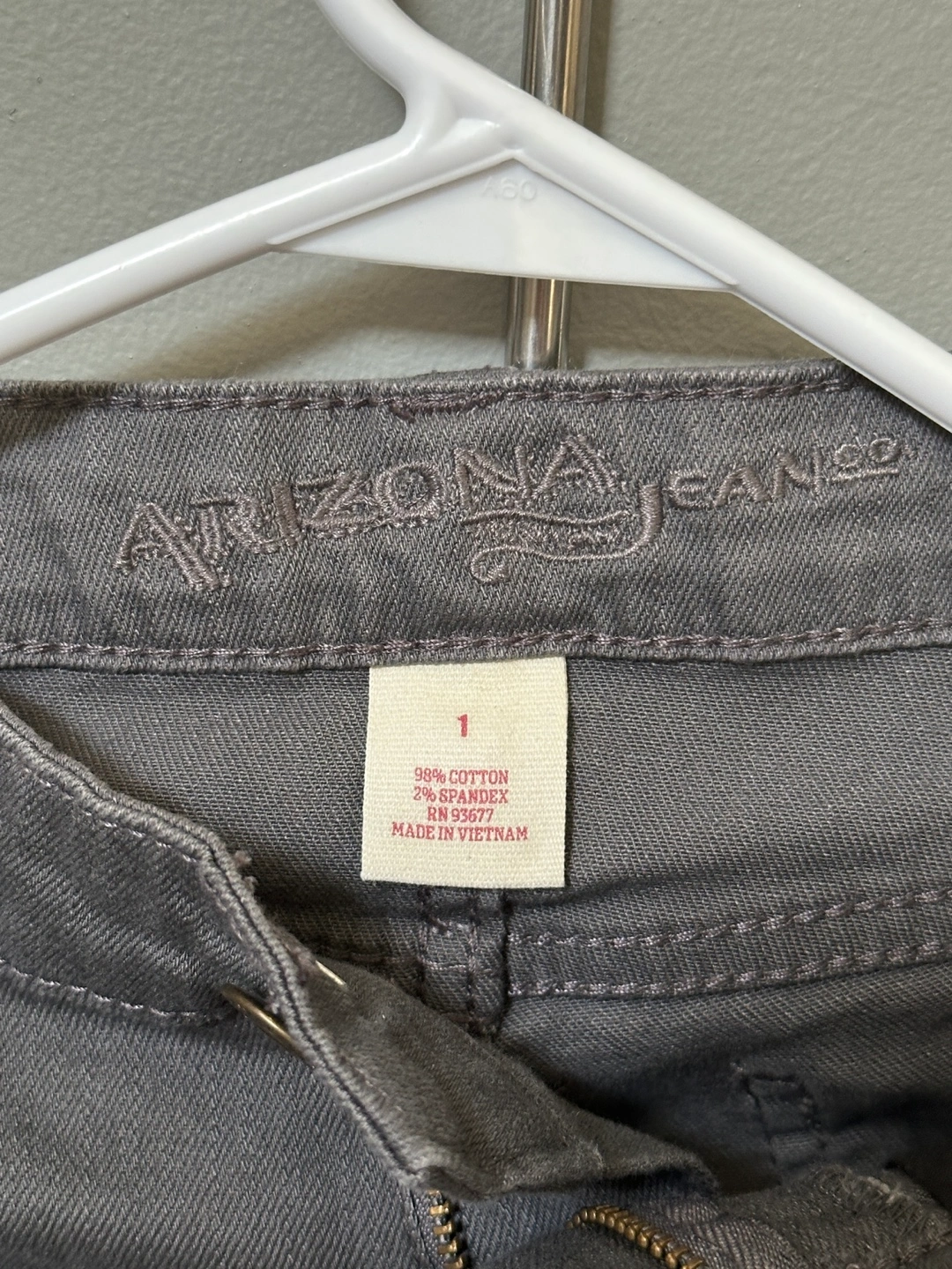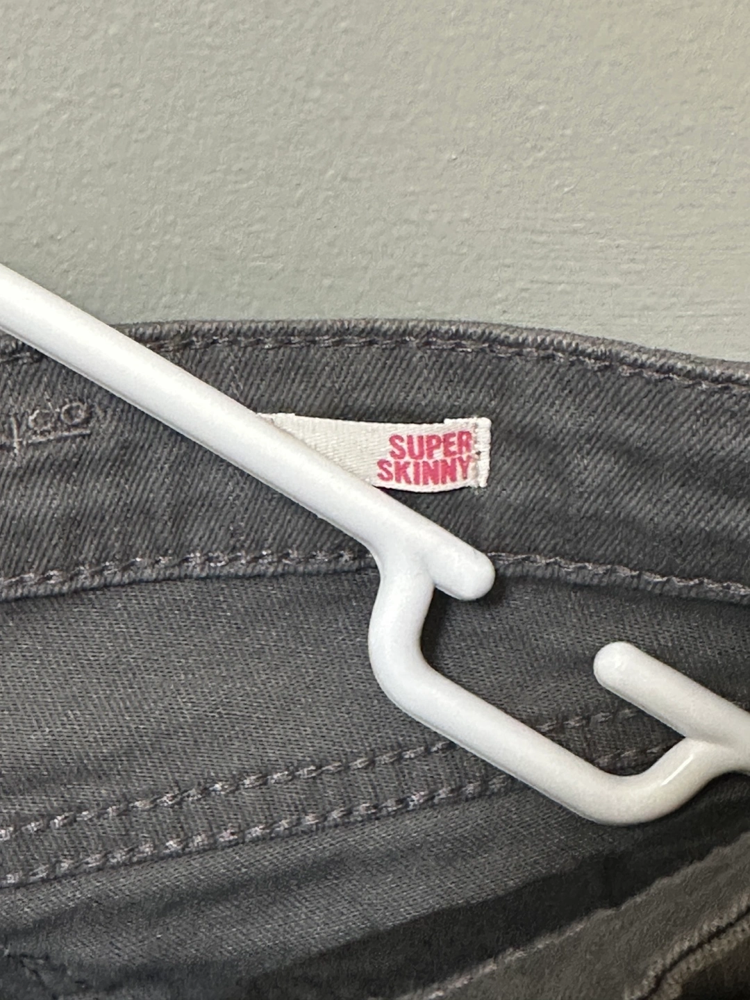 Gray super skinny jeans. Size 1. 98% cotton, 2% spandex. Made in Vietnam.