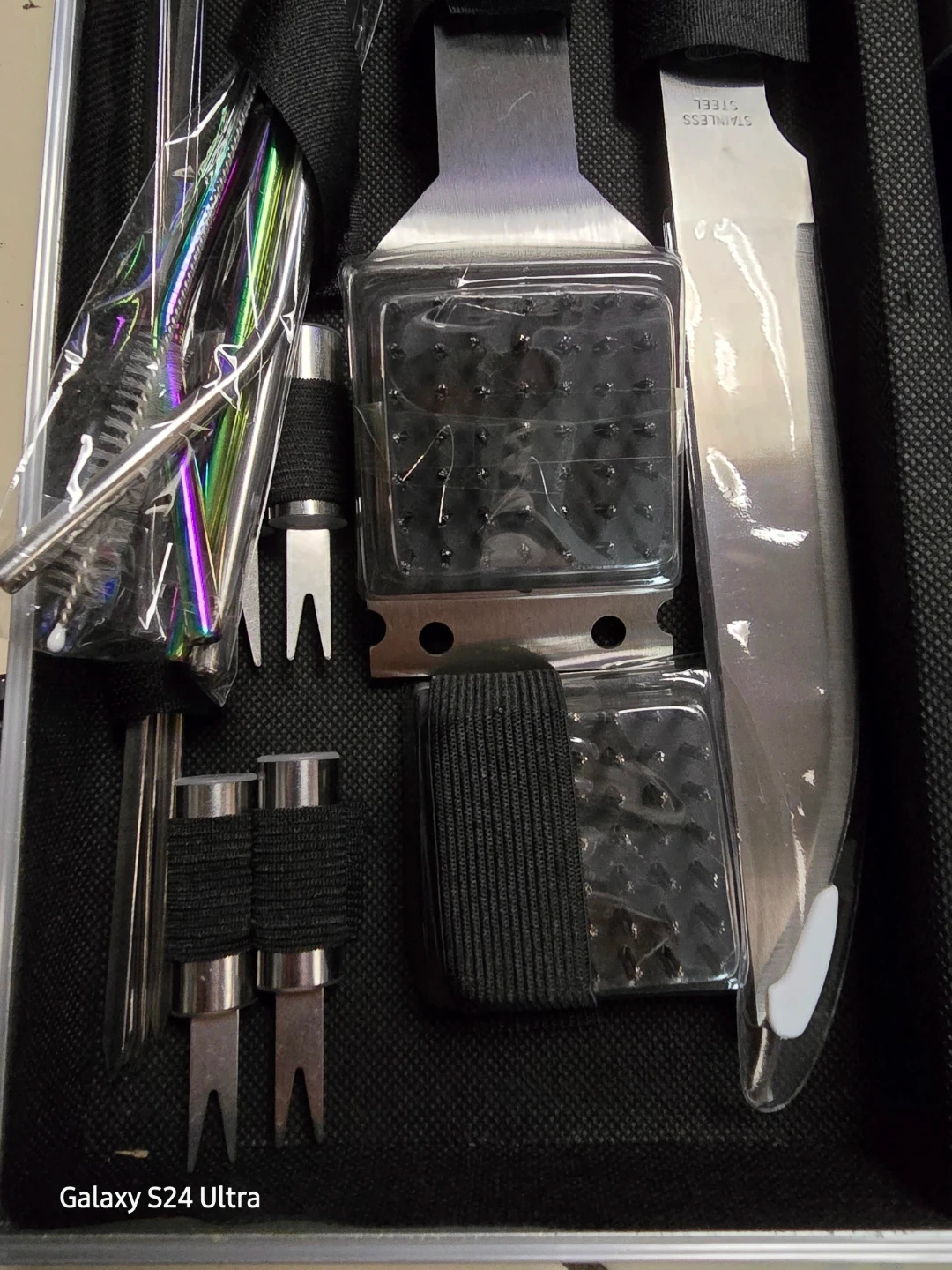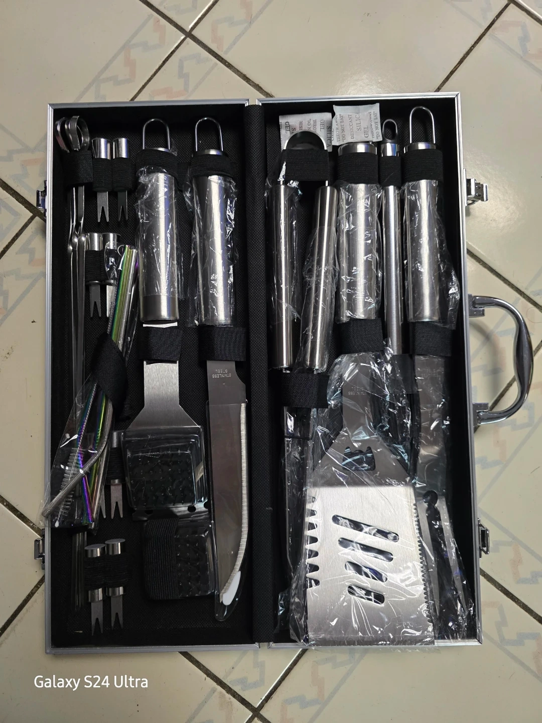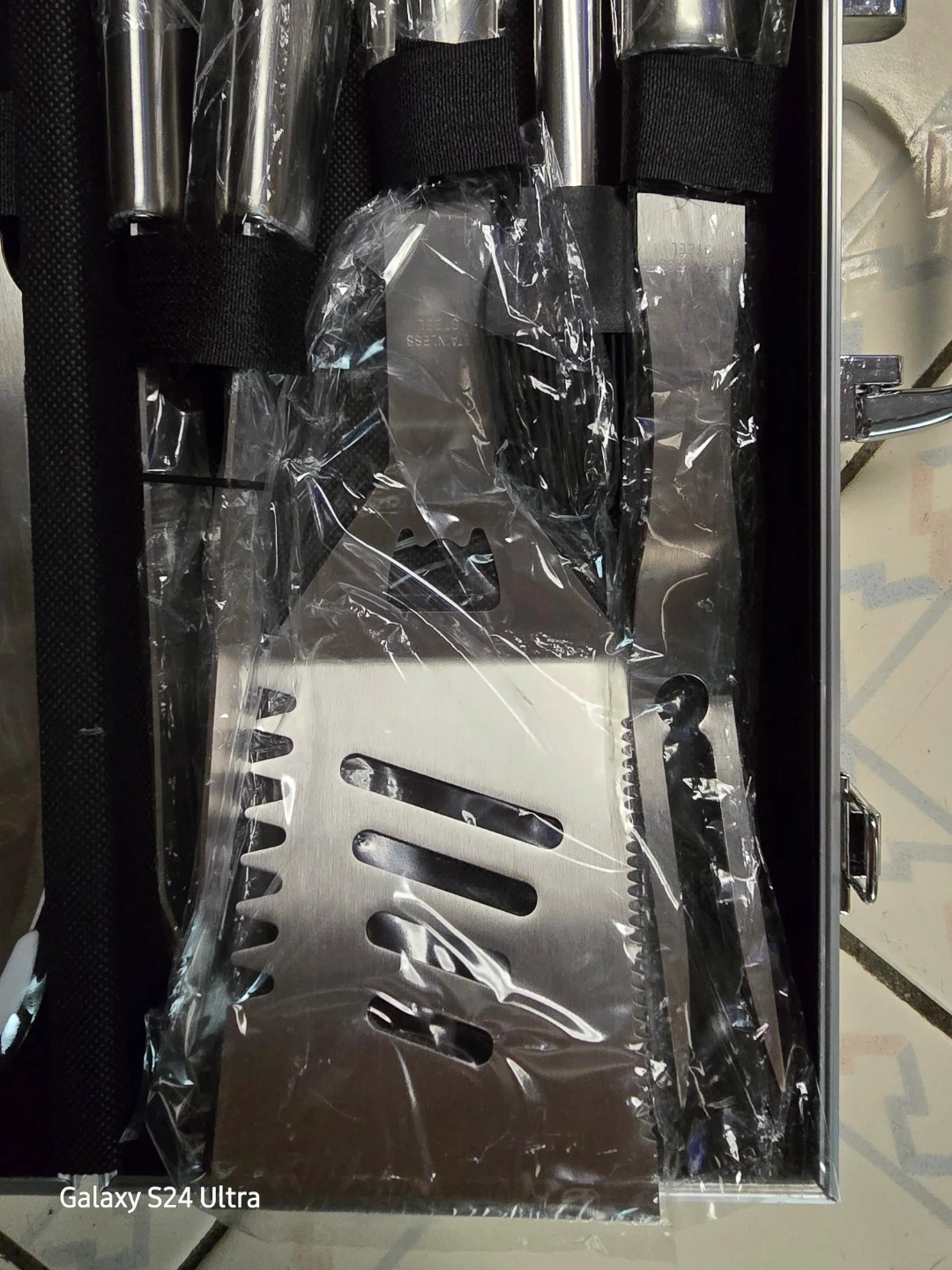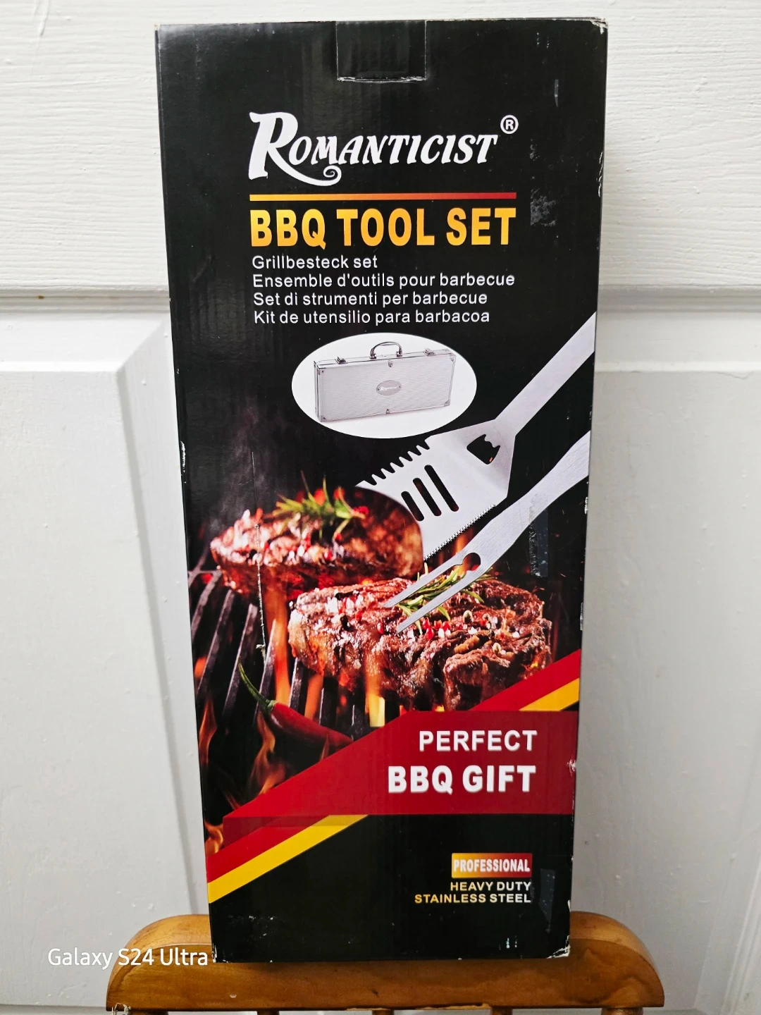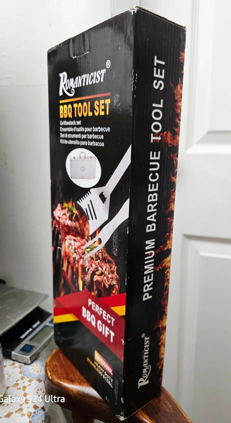 The ROMANTICIST 25pcs Heavy Duty BBQ Grill Gift Set in a sturdy aluminum case is a comprehensive and high-quality collection of barbecue tools designed for outdoor cooking enthusiasts. Made of durable stainless steel, this set includes everything you need for a memorable BBQ experience, from grill sets to a convenient carrying case.