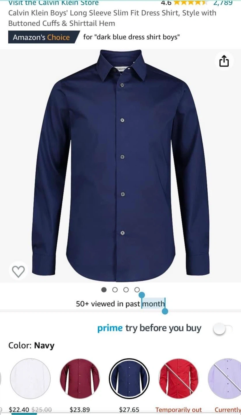 Calvin Klein Boys' Long Sleeve Dress Shirt🏆