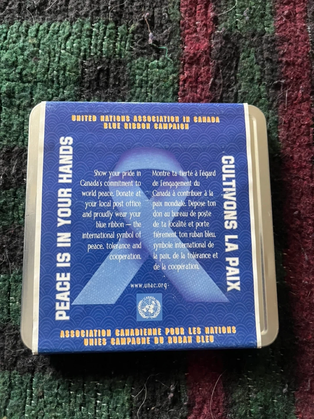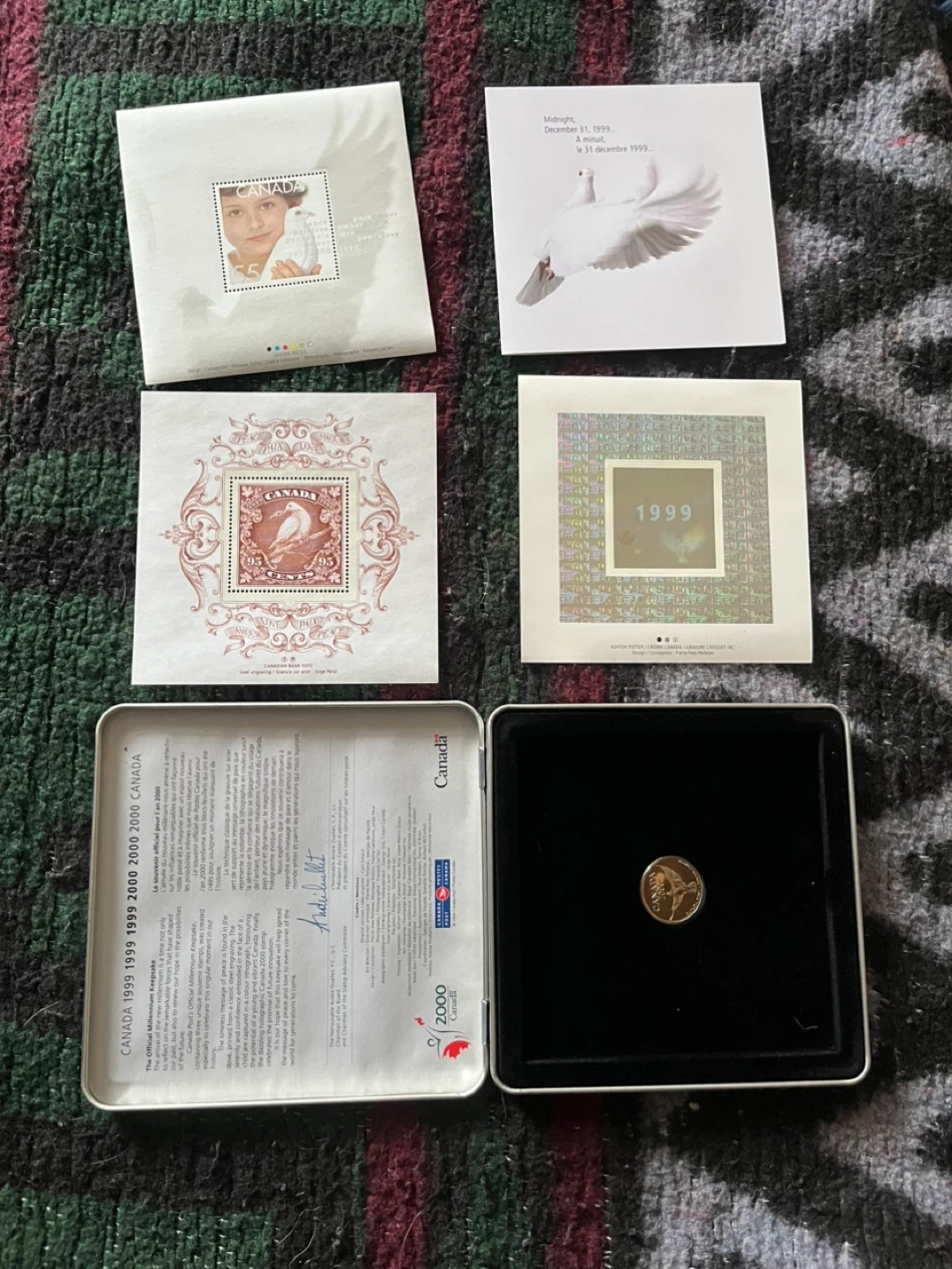 Includes a 1999 Canadian millennium coin and a selection of commemorative stamps. This collection celebrates Canada's commitment to world peace with a blue ribbon campaign theme. It's a great memento of the turn of the millennium!