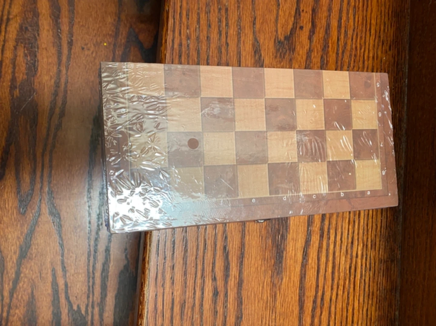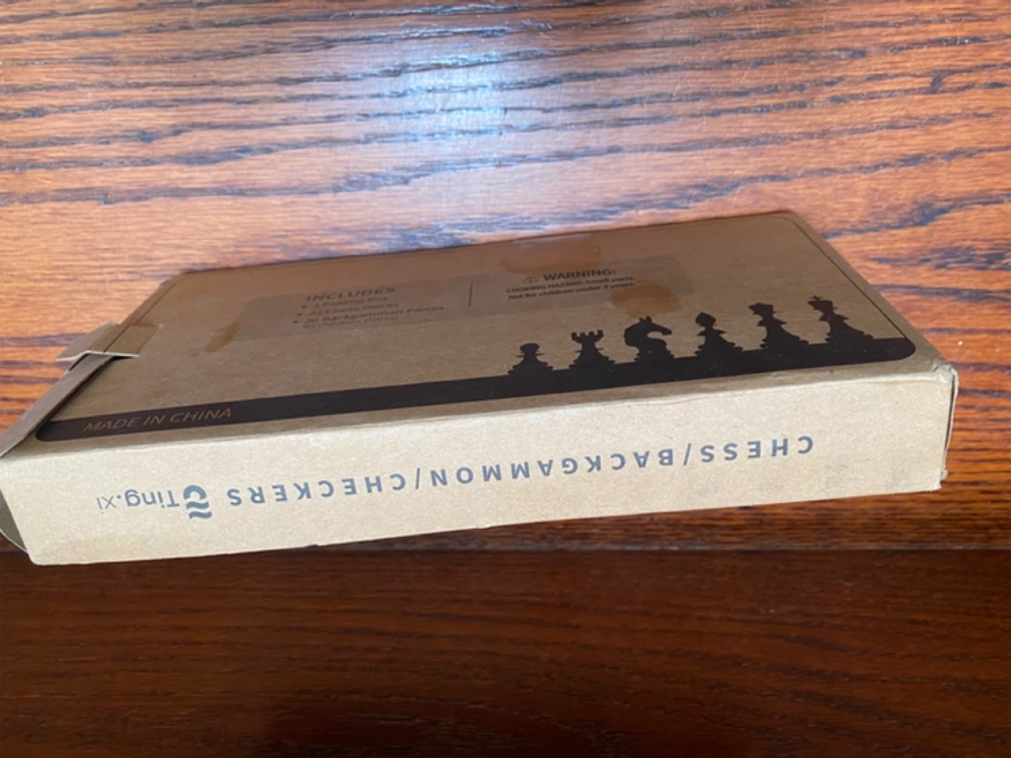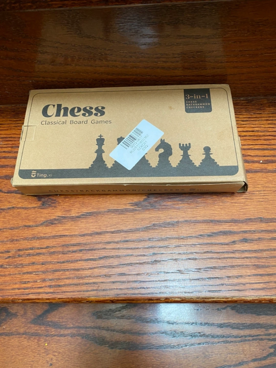 This is a 3-in-1 classical board game set, including chess, checkers, and backgammon. The set comes with 32 chess pieces, 30 backgammon pieces, and 32 checkers pieces. It's made in China.