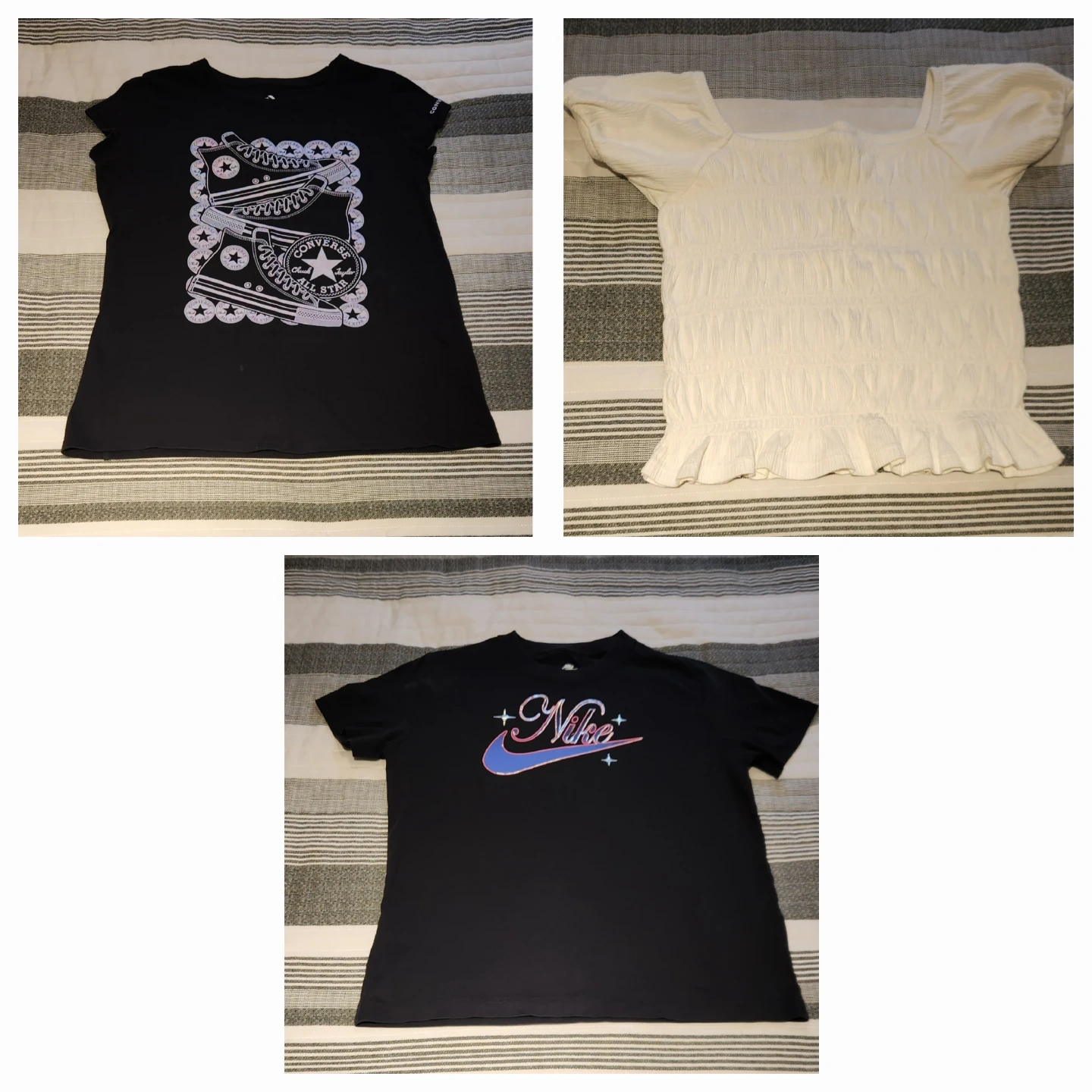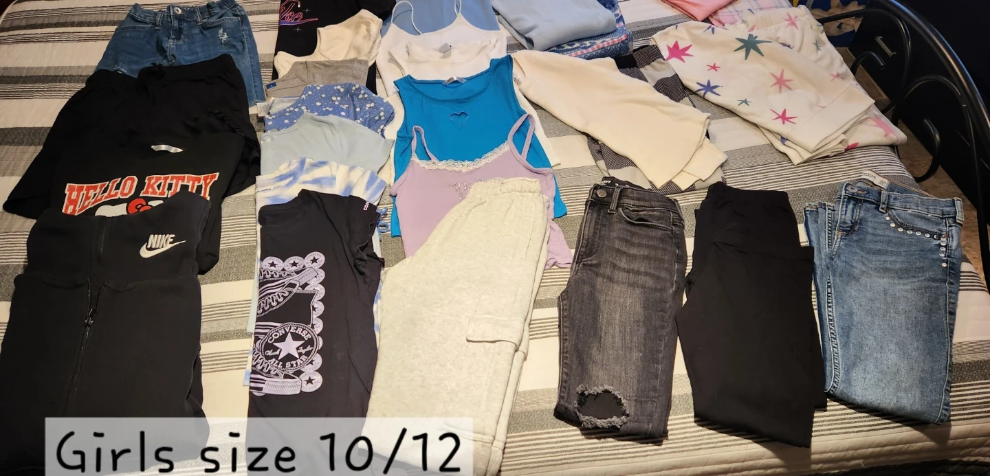 Selling a big lot of girls' clothing, size 10/12! Includes a variety of tops, pants, and sweatshirts from brands like Nike, Converse, Hello Kitty, and Old Navy. Great for stocking up on everyday wear