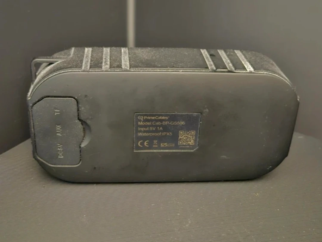 Selling a PrimeCables waterproof speaker, model Cab-BP-GS506. It's in good condition and ready for your next adventure! It's waterproof with an IPX5 rating, so it's perfect for outdoor use.
