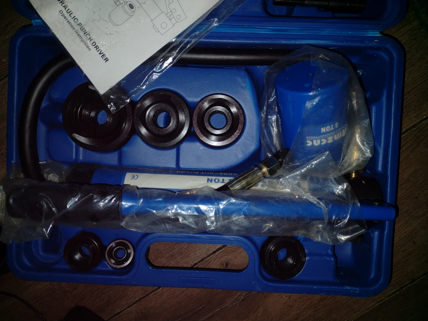 This hydraulic punch driver kit is brand new never been used still in plastic in the original carrying case with instructions and everything is there. Comes with multiple dies and an operation instruction manual. It's designed for punching holes in various materials. Ideal for metalworking and electrical installations.
