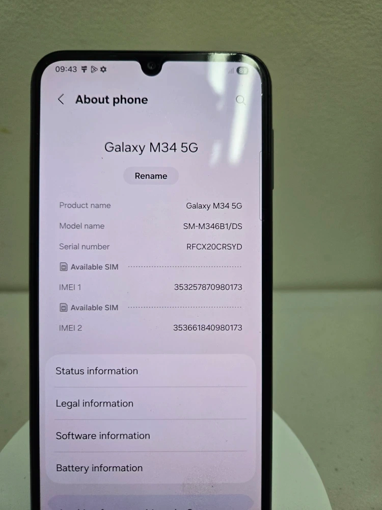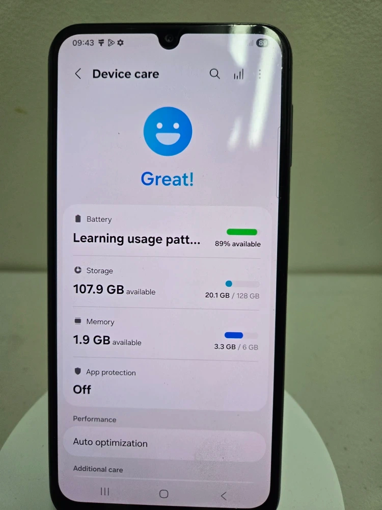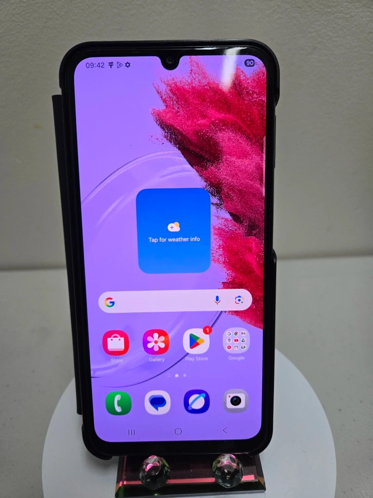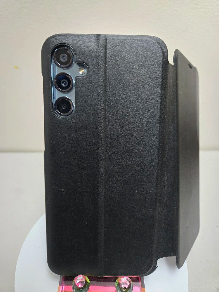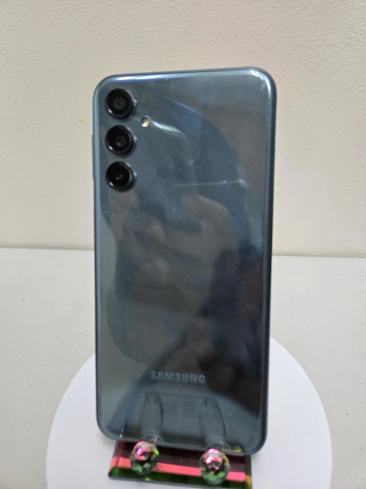 Samsung Galaxy M34 5G smartphone. It has 128 GB of storage and 6 GB of memory. Includes a protective case. This device is great for everyday use!
