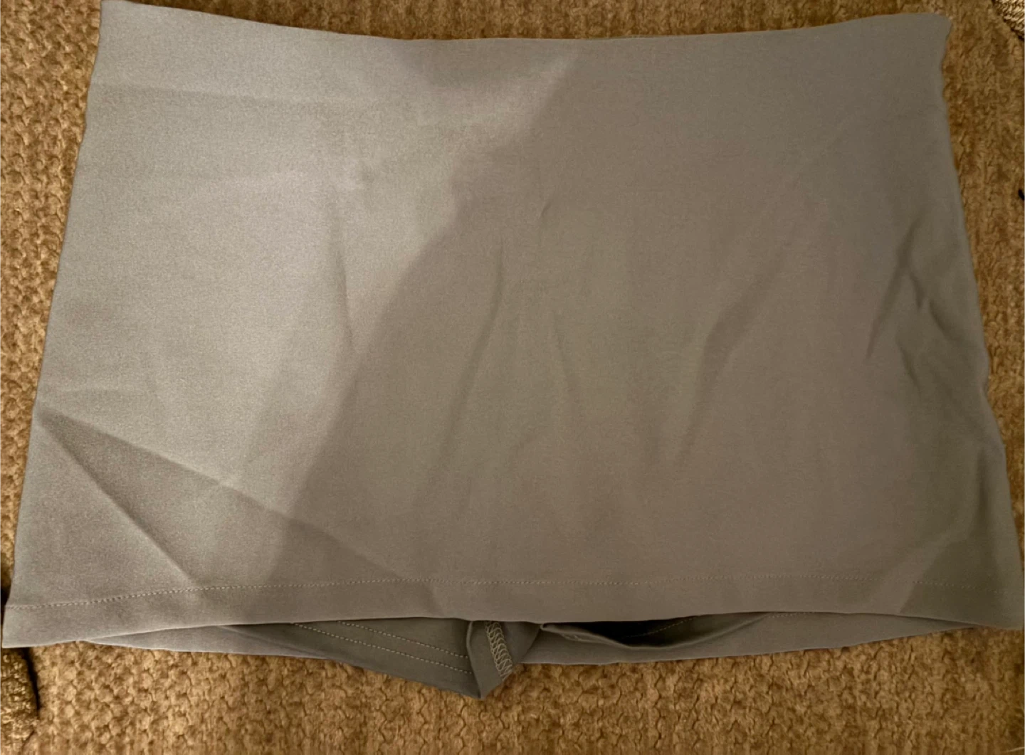 This grey skirt/ skort is made from a blend of polyester. It features a flattering A-line cut and a built-in liner. Perfect for casual or dressy occasions. Size small
