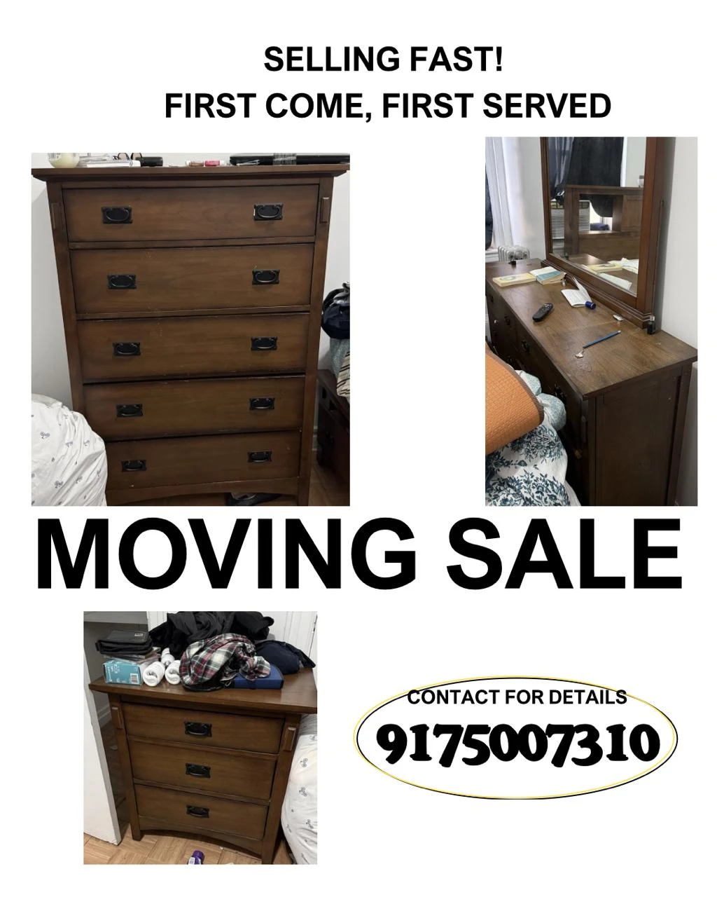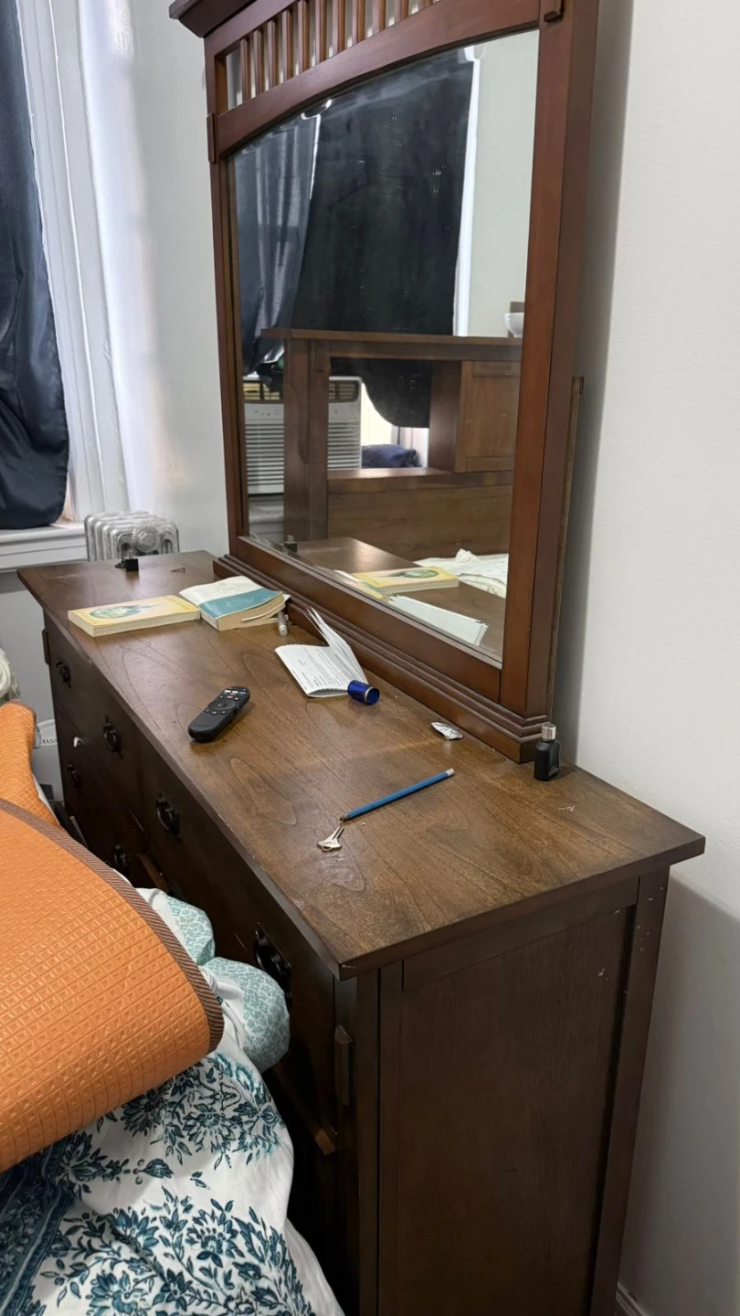 1 / 71 / 7Buy & SellWooden Dresser with MirrorWooden Dresser with Mirror$270Wooden dresser pieces one with a mirror. It has multiple drawers and is made of dark wood. Perfect for storing clothes and accessories. All pieces amounting to 300 dollars.WHERE TO MEETCheck LocationView MapSELLERverifiedGarretteJamaica650 reviews1 chats·1 favorites·101 viewsSEND CHAT TO SELLERHi Garrette! I’m interested in your listing.Hi Garrette! I’m interested in your listing.Get the Karrot app to chatSign In to chat