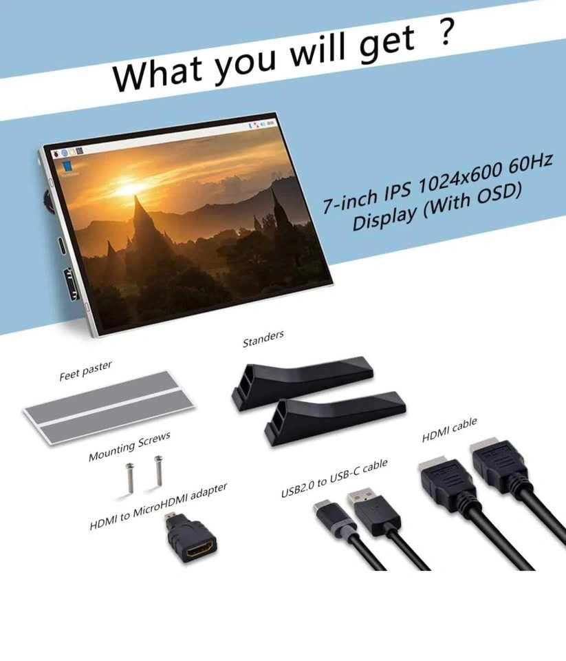 This is a GeeekPi 7-inch screen for Raspberry Pi, featuring a 1024x600 IPS LCD display and HDMI connectivity. It's compatible with Raspberry Pi 5, Pi 4B, Pi 3B+/3B/B+/Zero/400, and Windows 11/10/8/7. Please note this is a non-touch model. Feel free to message if you have any questions!