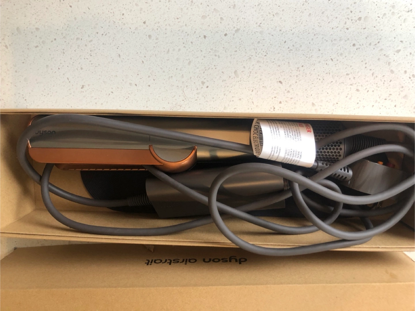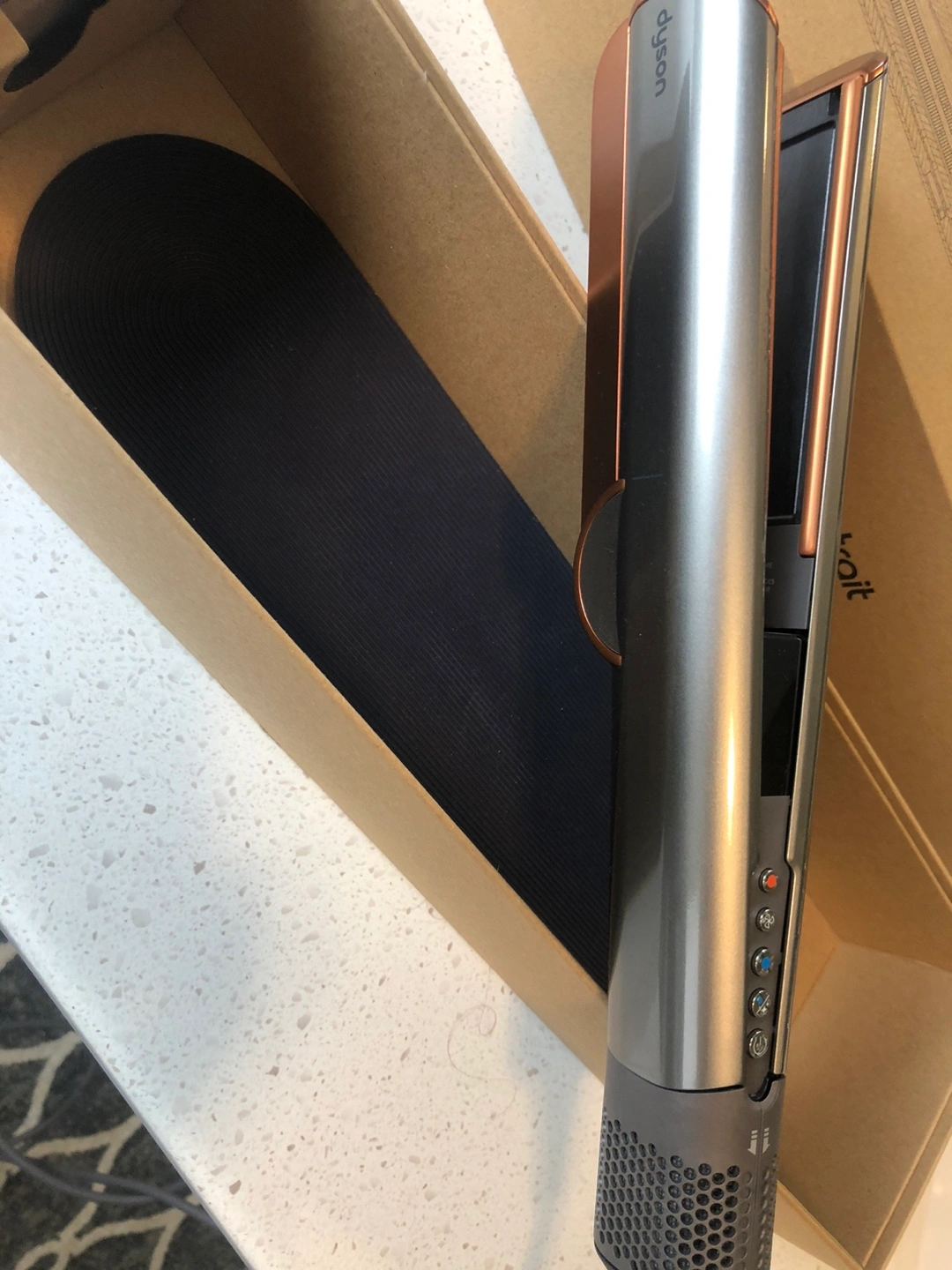 The device is a hair styling tool, presumably with a heating element. Appears to come in its original packaging. Would be a wonderful addition to your everyday hair styling routine, or a great gift for a loved one.