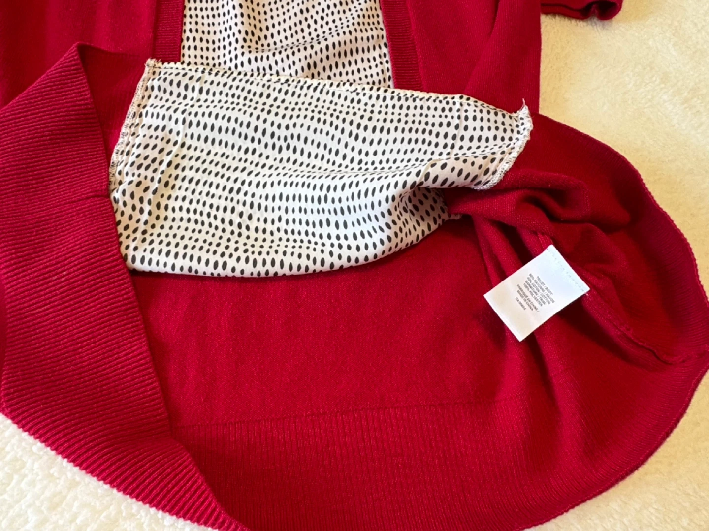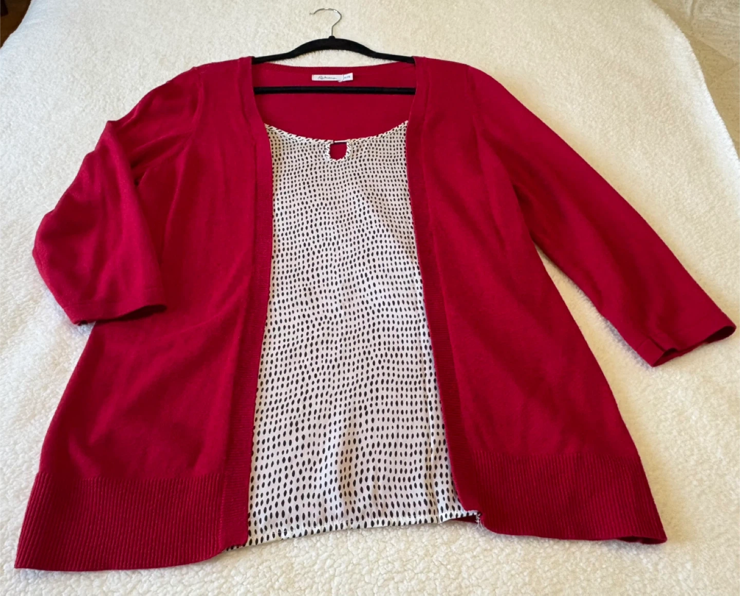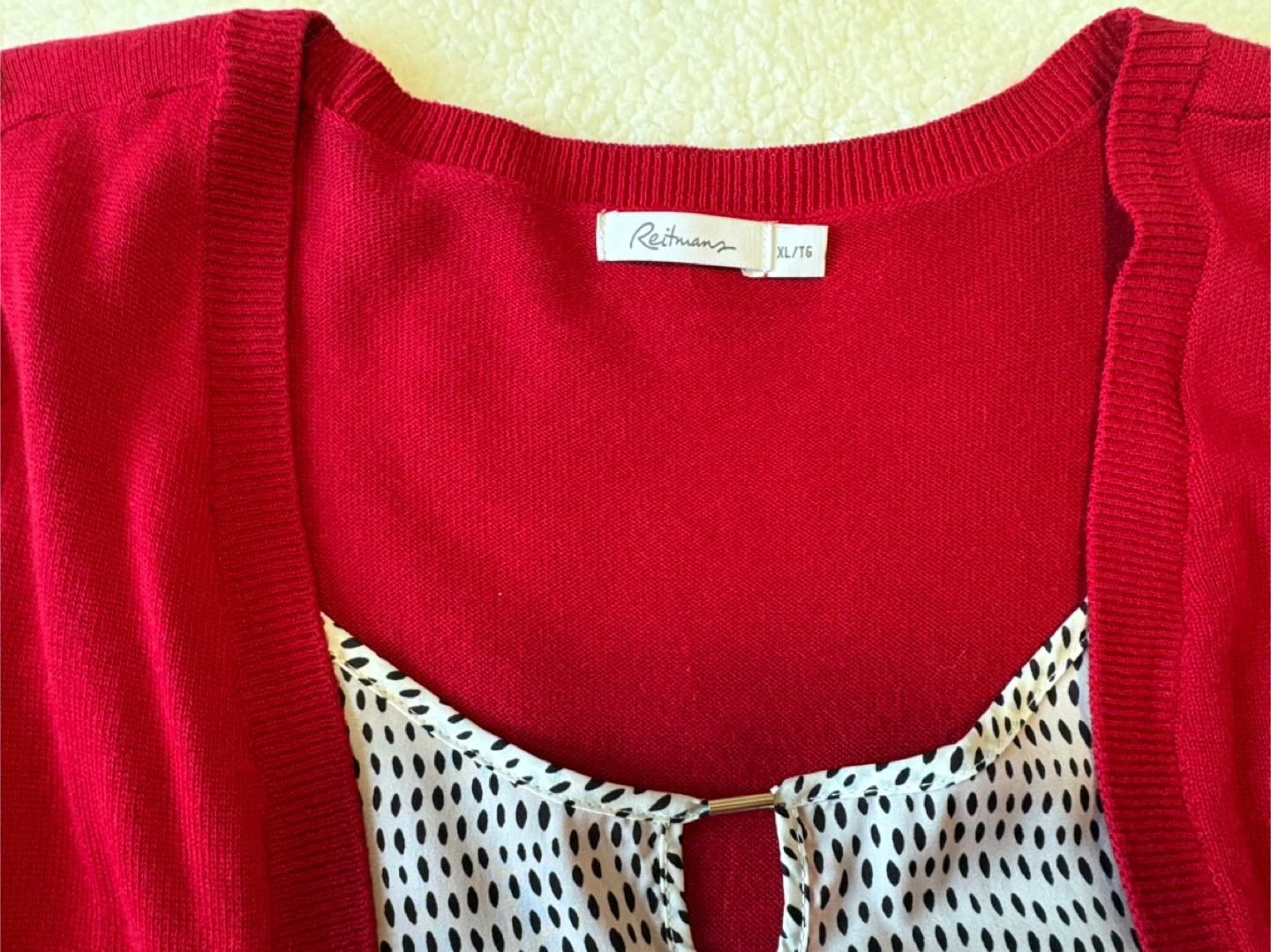 Elevate your wardrobe with this stylish Reitmans cardigan, size XL/16, featuring a chic red colour and a complementary patterned inner lining, perfect for layering.