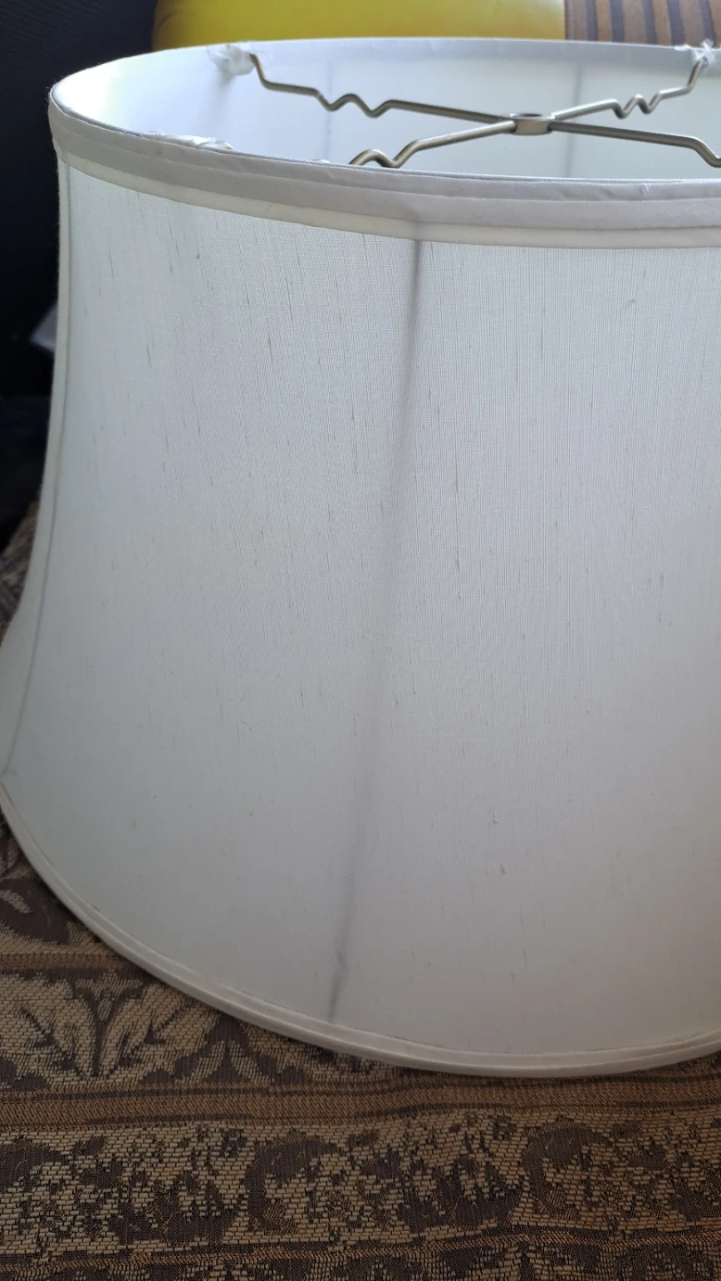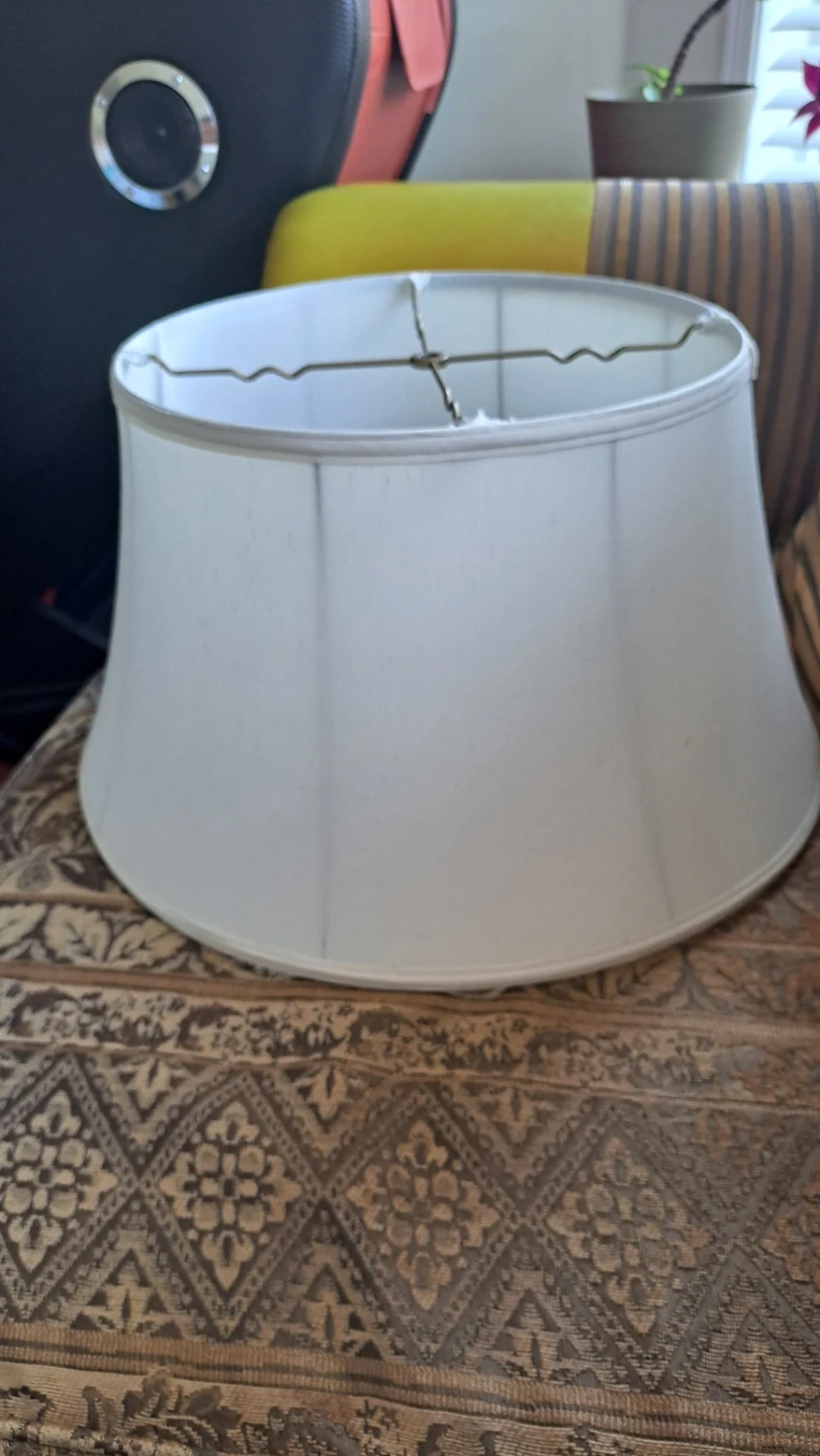 A white fabric drum lampshade for your table or floor lamp. It's a classic shape that fits most standard fixtures. The material appears to be a linen blend.