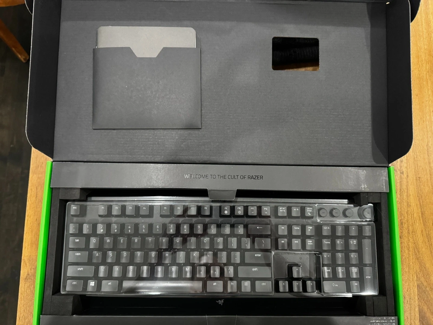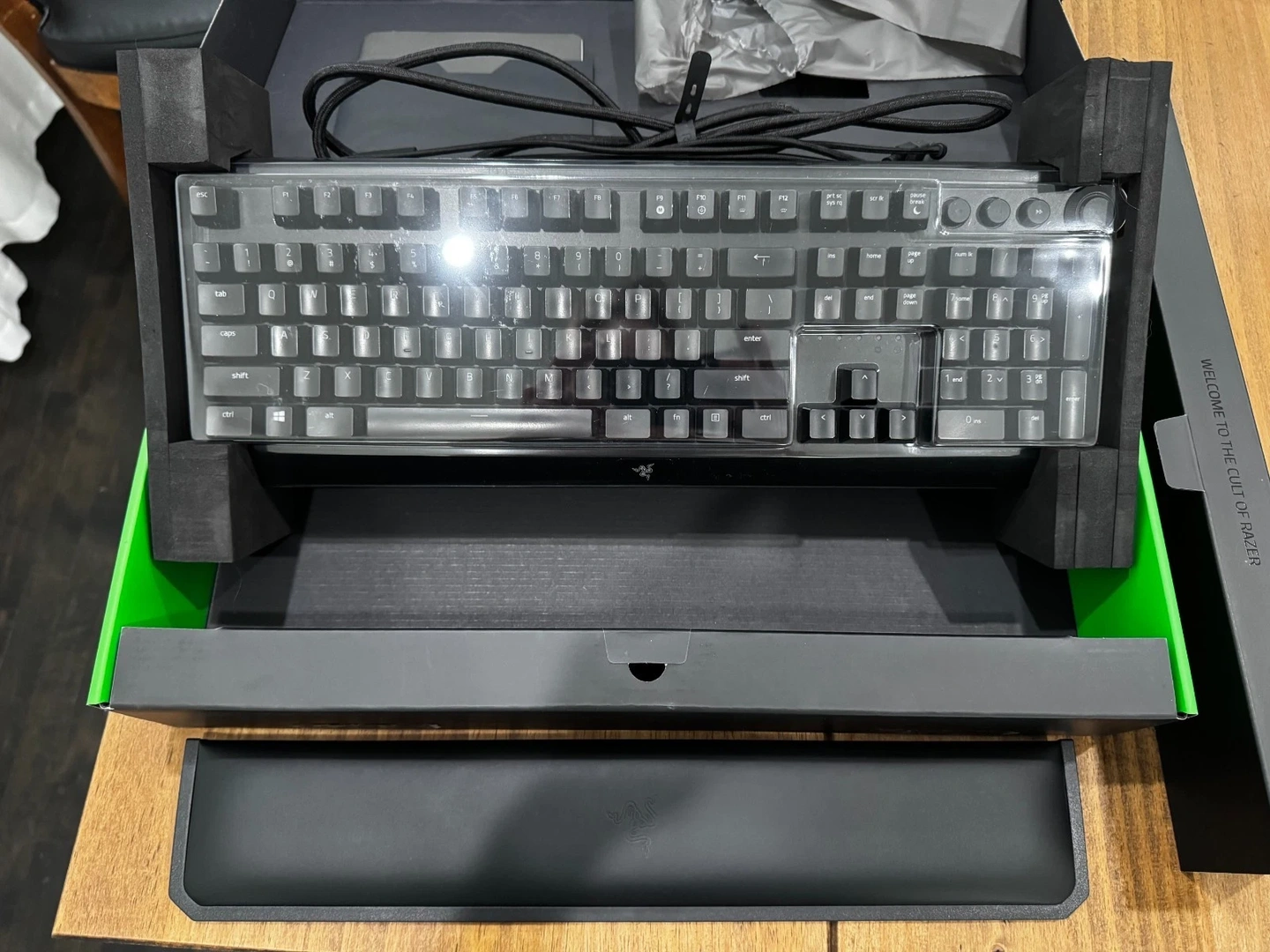 Lightly used, well cared for. RGB lighting works fully. Includes magnetic wrist rest. May present minor cosmetic scuffs from light use. All original contents included.