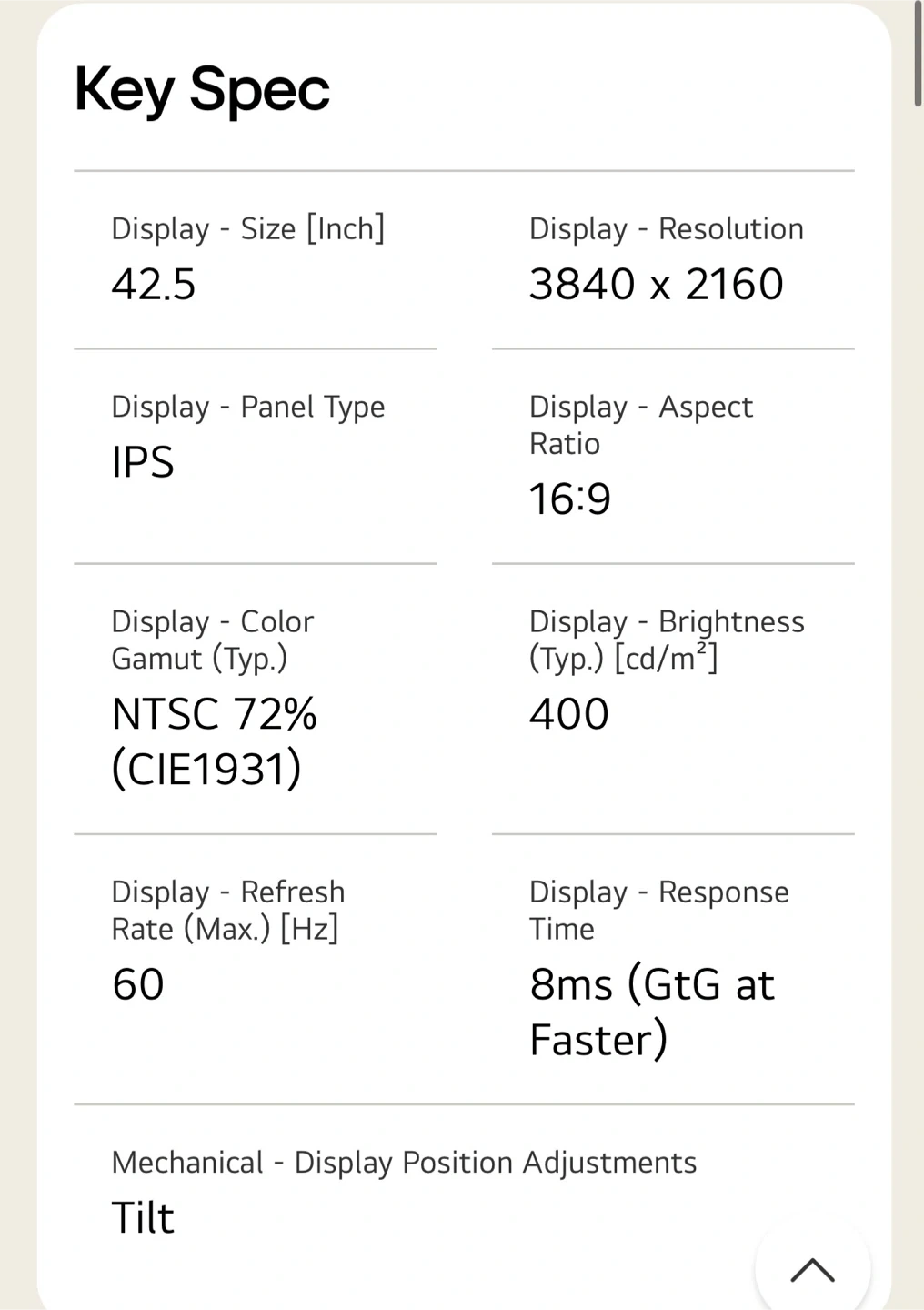 • 42.5” 4K UHD (3840 × 2160)
