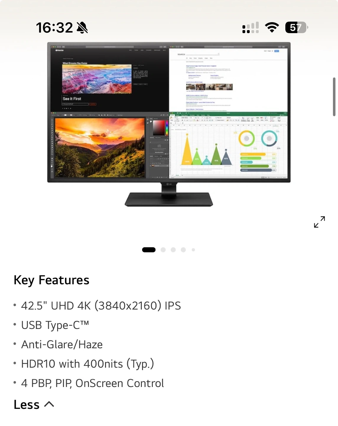 Selling my 42.5” 4K UHD IPS monitor in excellent working condition. The screen, ports, and performance are all 100% functional — no dead pixels, no display issues, and works perfectly on its stand.