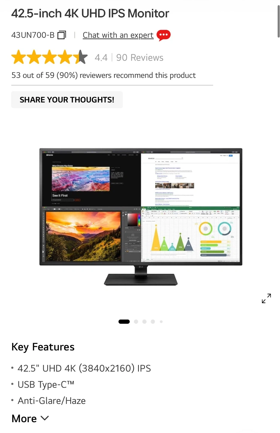 LG 42.5” 4K UHD IPS Monitor – Fully Functional