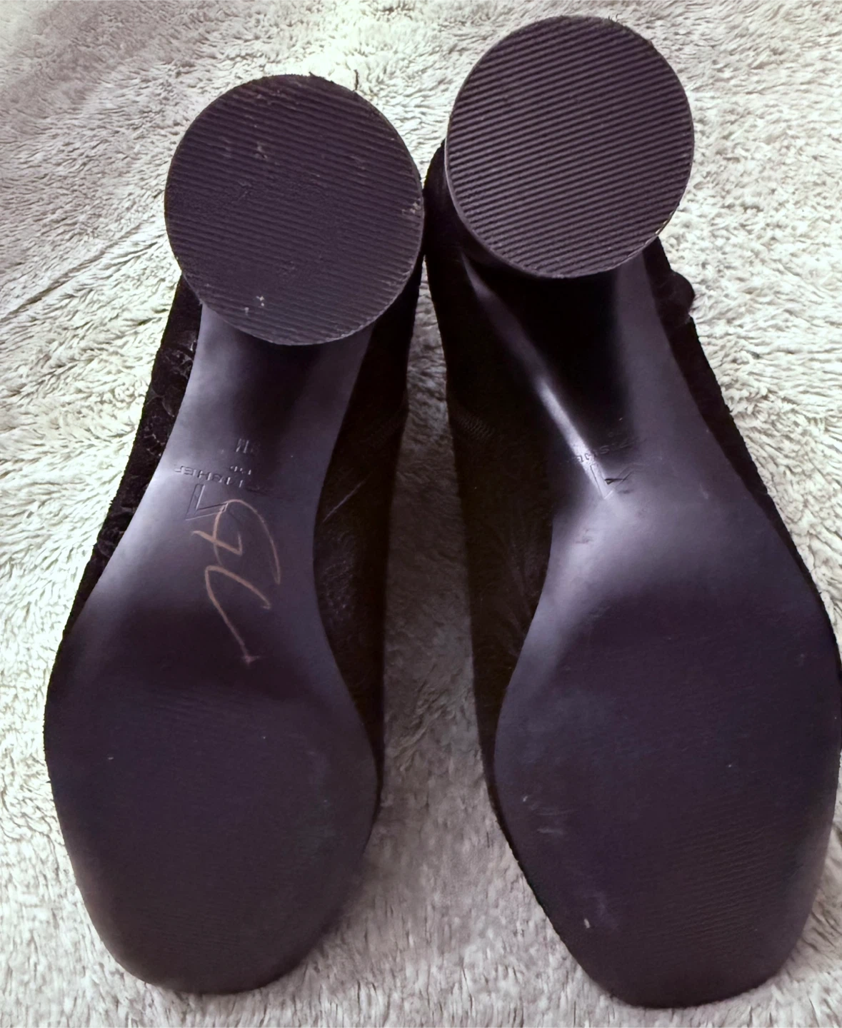 Marc Fisher Black Embossed Ankle Boots with Block Heel