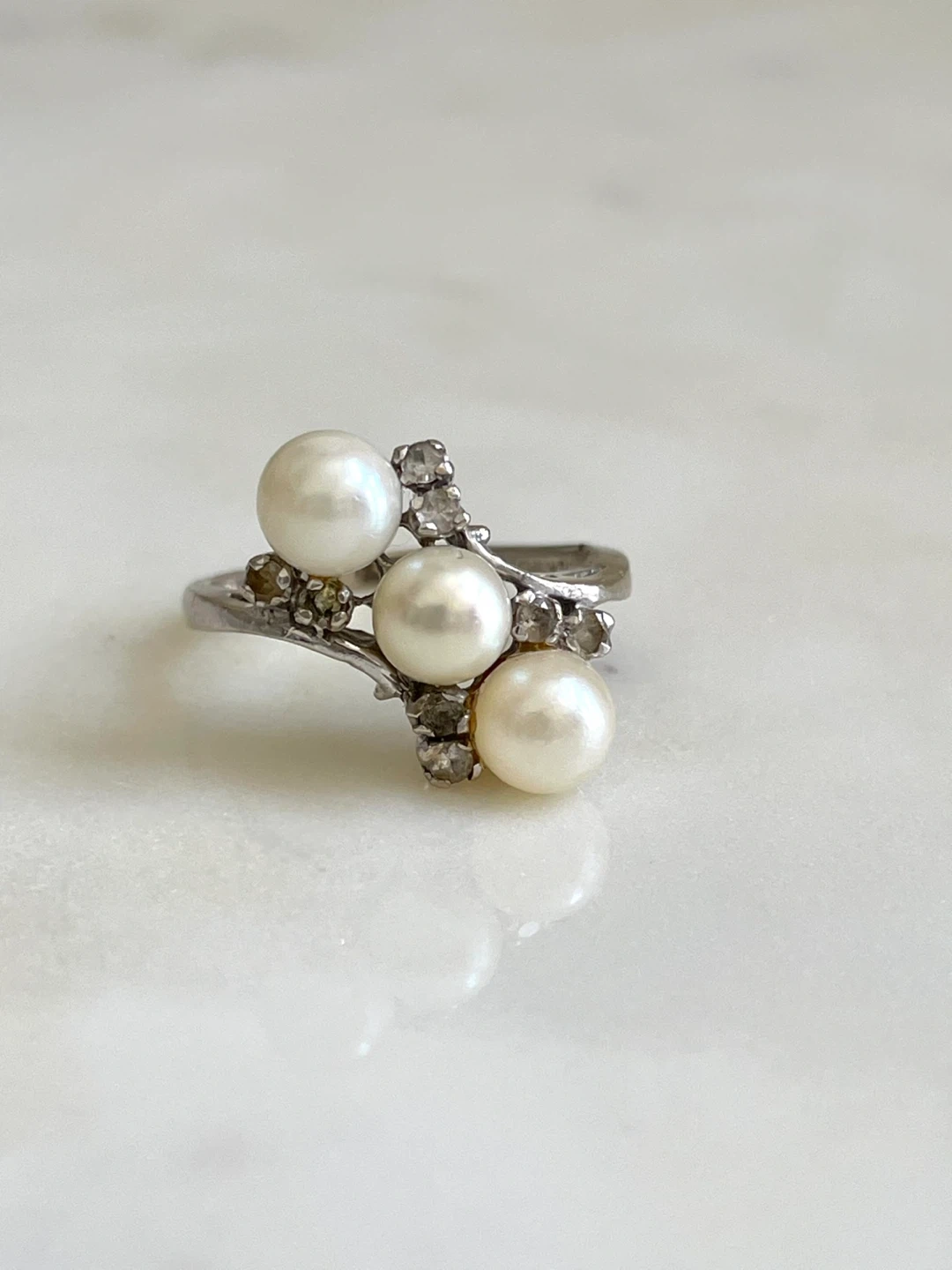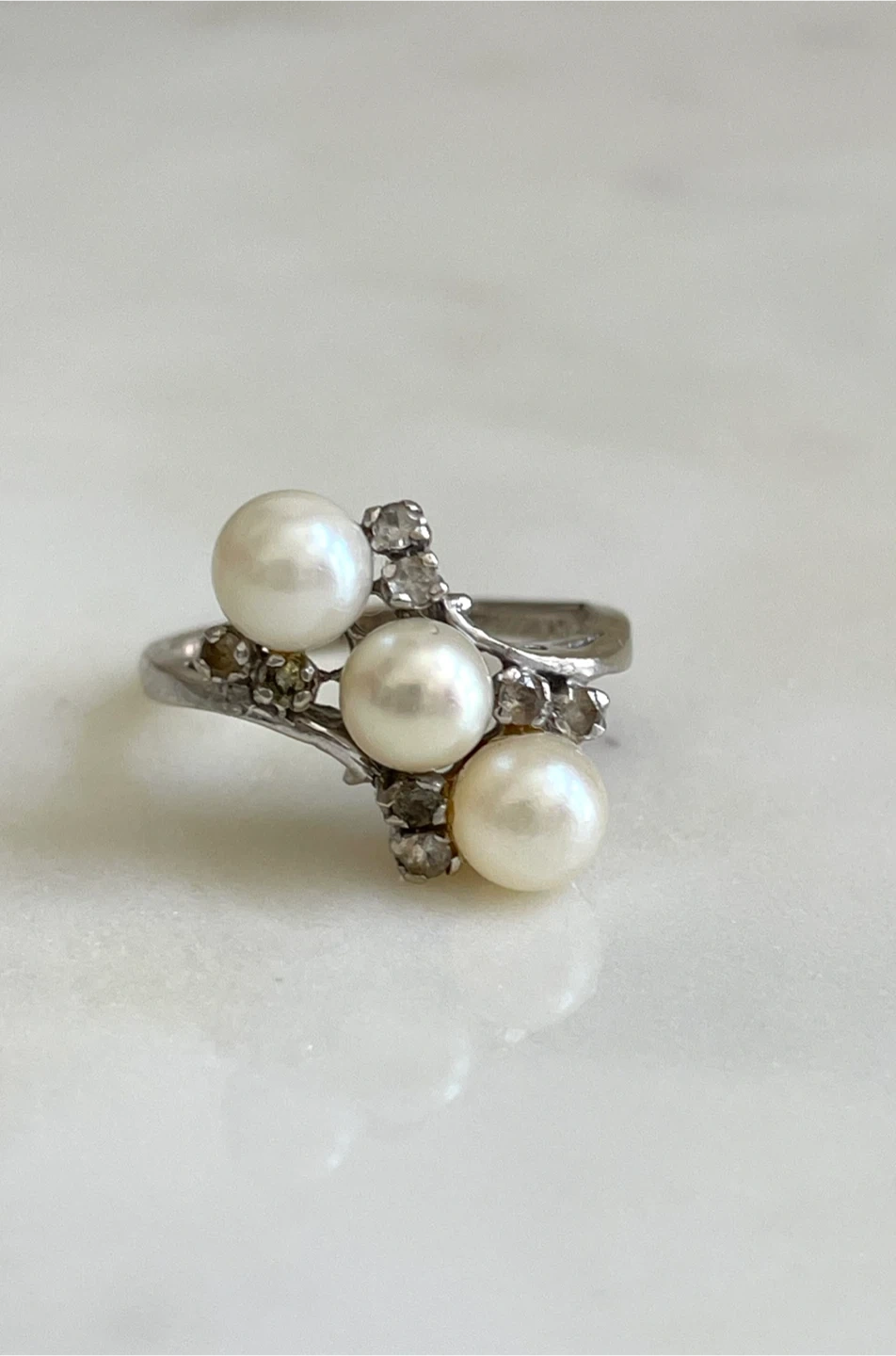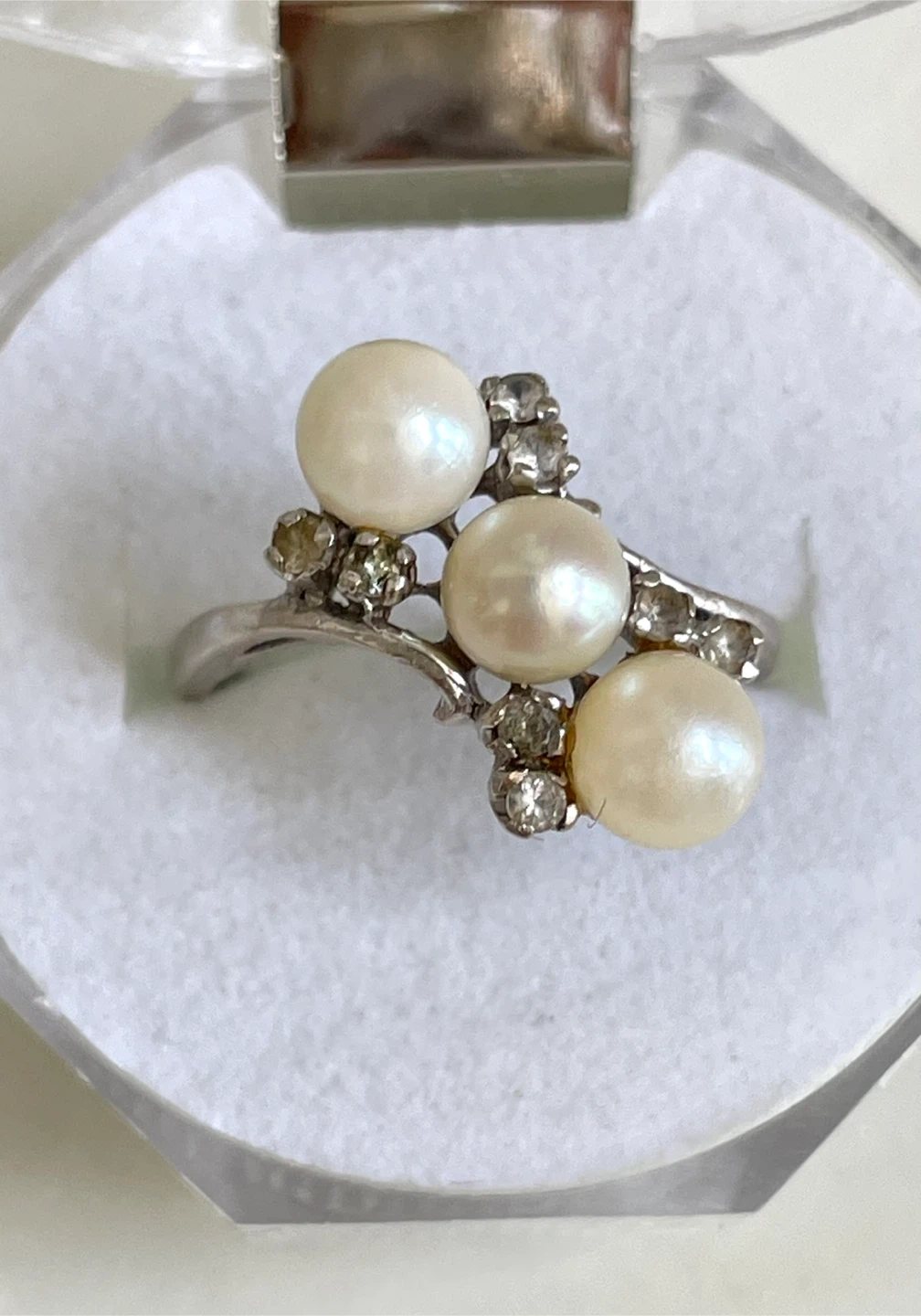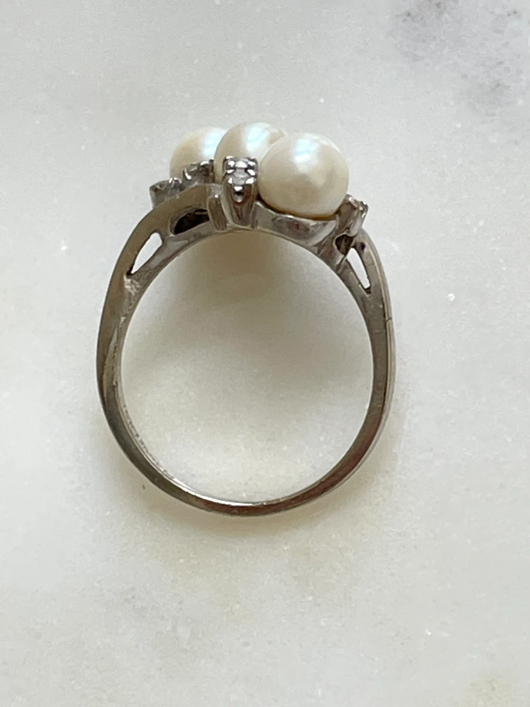 STUNNING Vintage 10k White Gold Ring with 3 Cultured Pearls