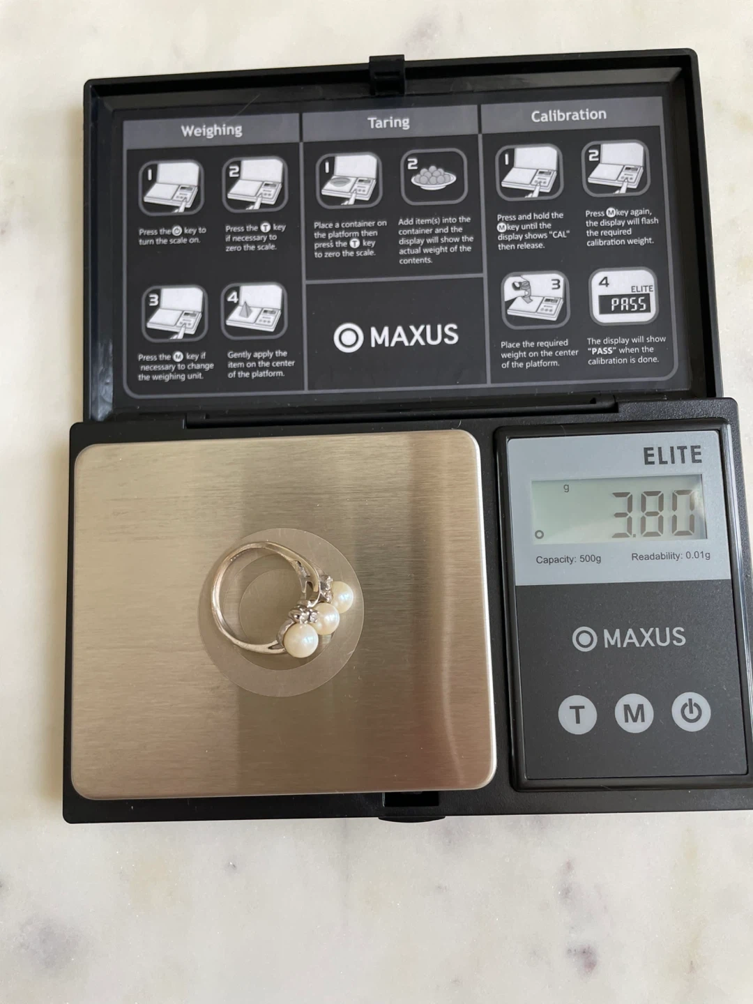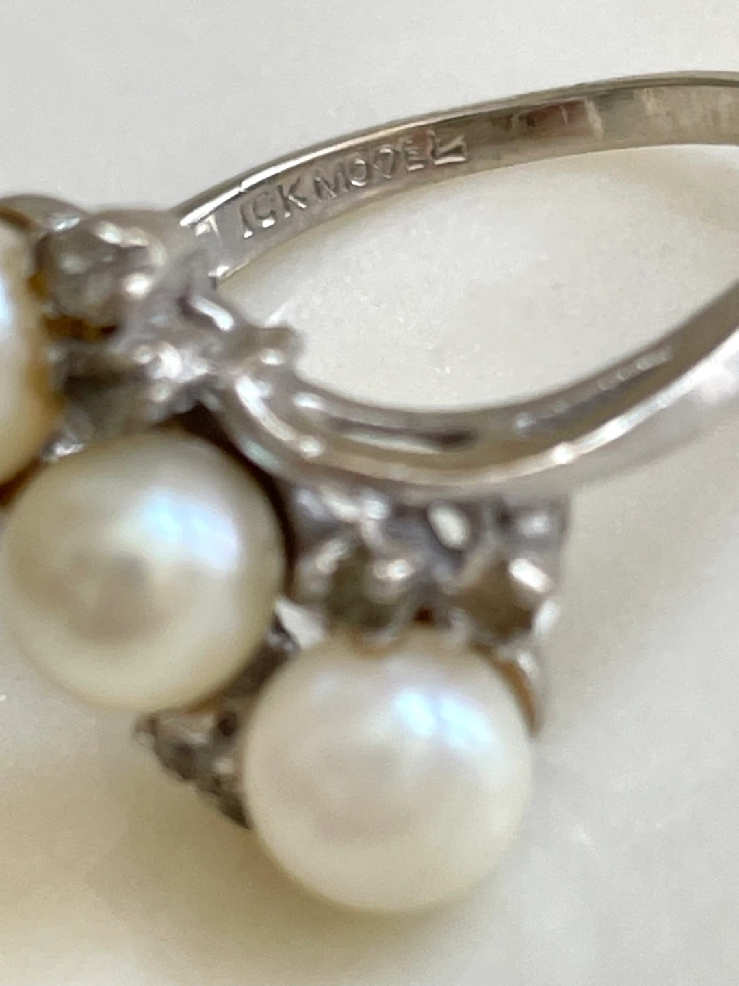 STUNNING Vintage 10K White Gold Ring with 3 Cultured Pearls