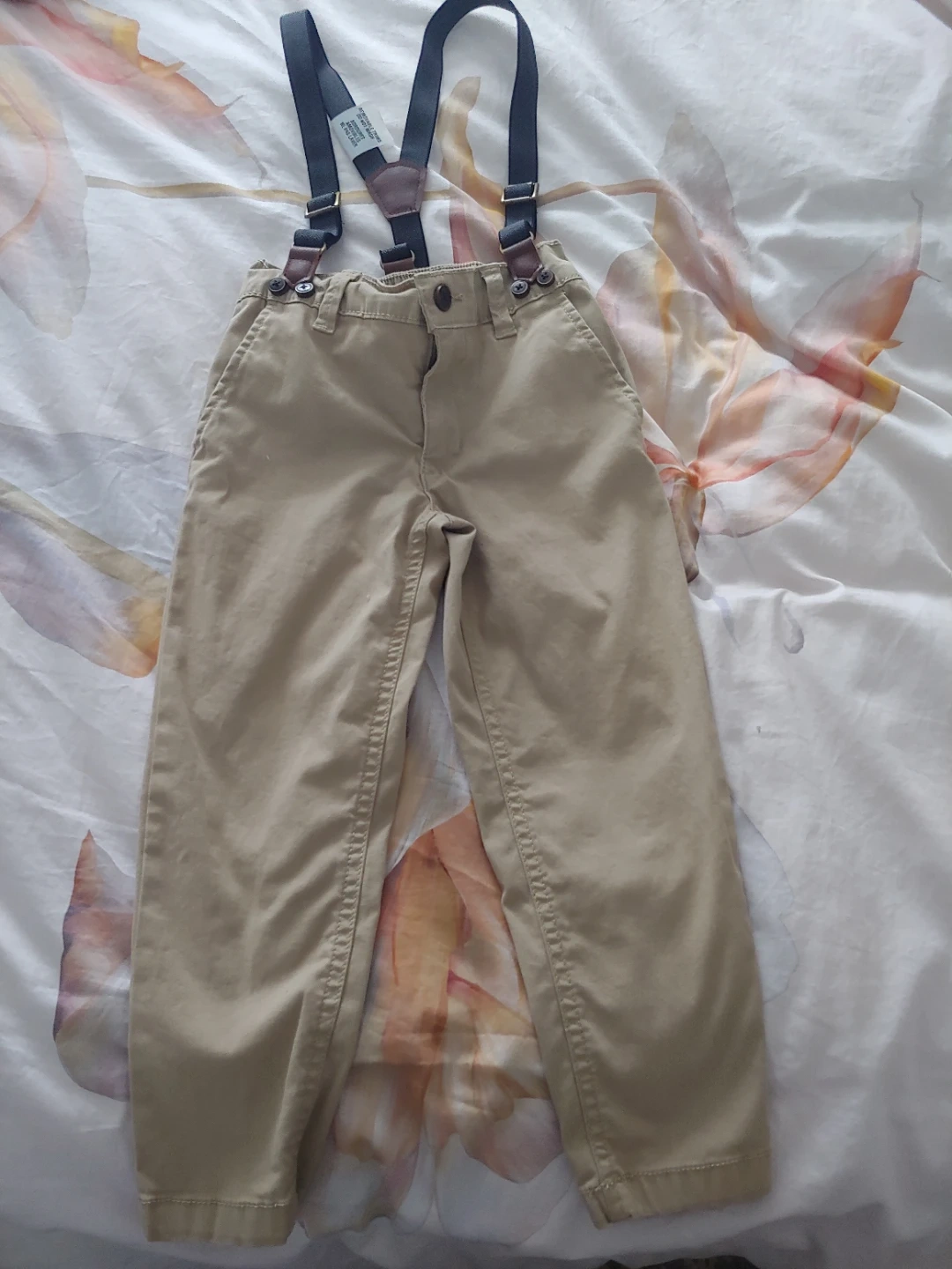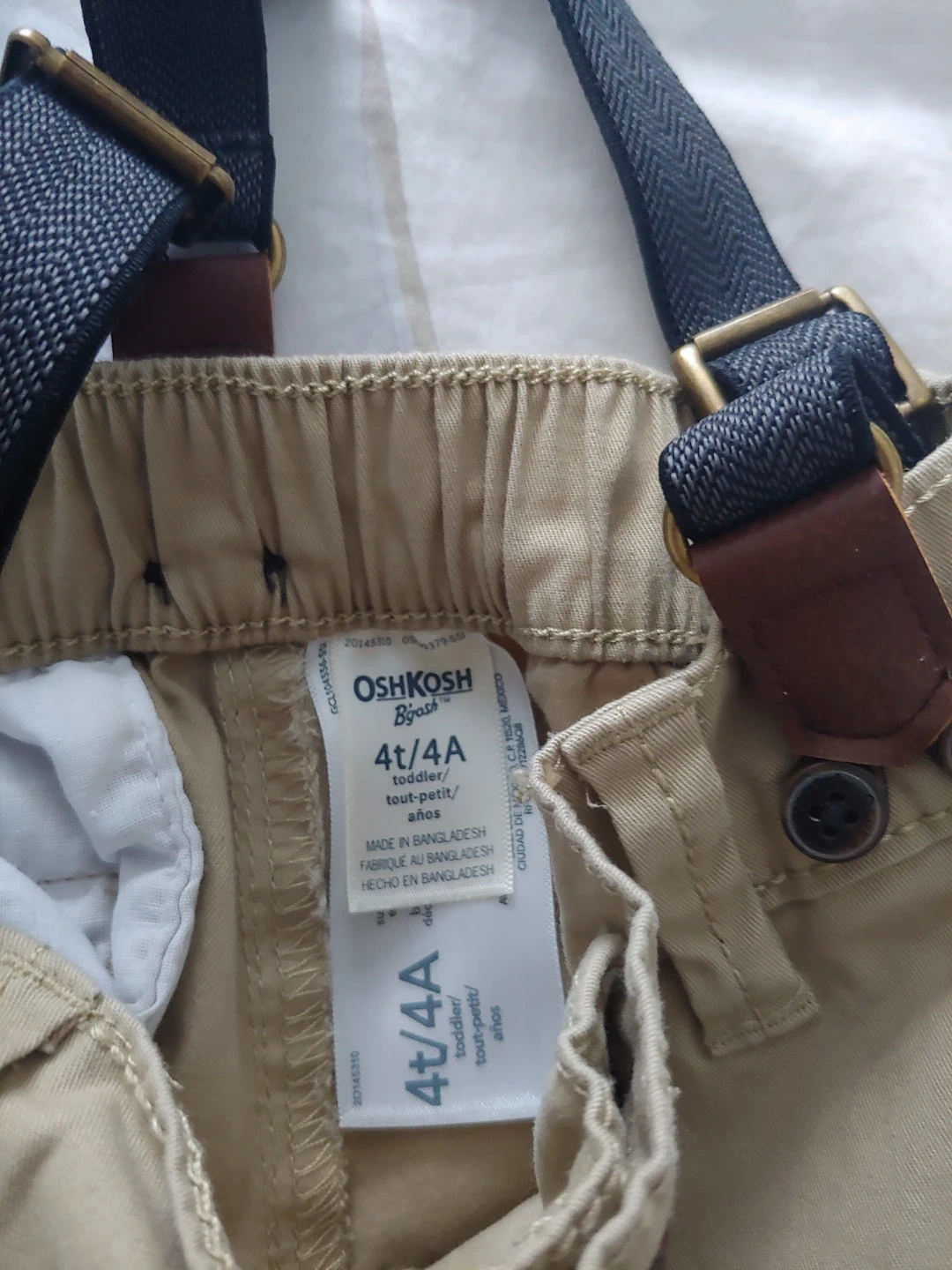 New boys OshKosh Toddler Khaki Pants with Suspenders-4T π