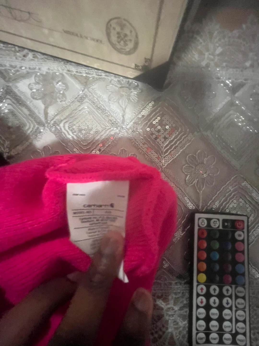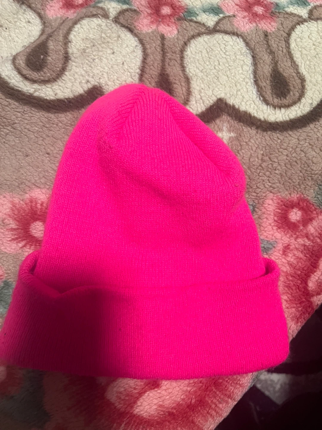 This is a bright pink Carhartt beanie hat. It's made from a soft, ribbed knit material. One size fits most.