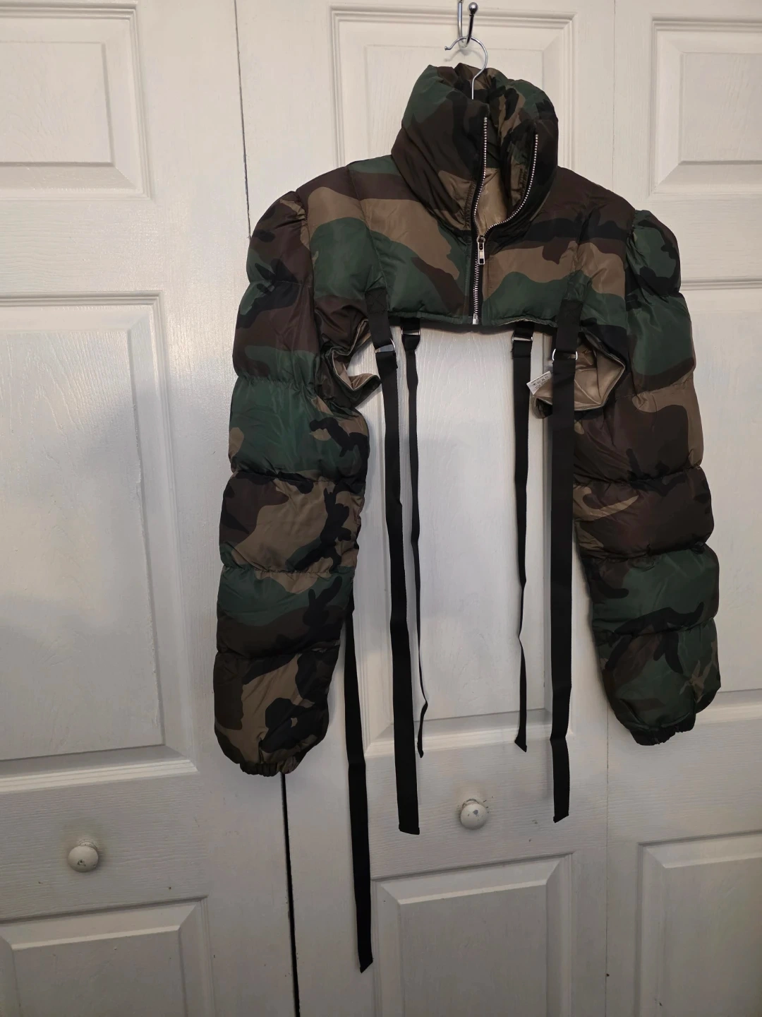 Buy & SellCamouflage Cropped Puffer JacketCamouflage Cropped Puffer Jacket$25This cropped puffer jacket features a camouflage print and long sleeves. It has adjustable straps with D-rings. Zipper closure.ConditionNewSizelarge WHERE TO MEETRoselandView MapSELLERverifiedDaphneRoseland55834 reviews0 chats·0 favorites·8 viewsSEND CHAT TO SELLERHi Daphne! I’m interested in your listing.Hi Daphne! I’m interested in your listing.Get the Karrot app to chatSign In to chat
