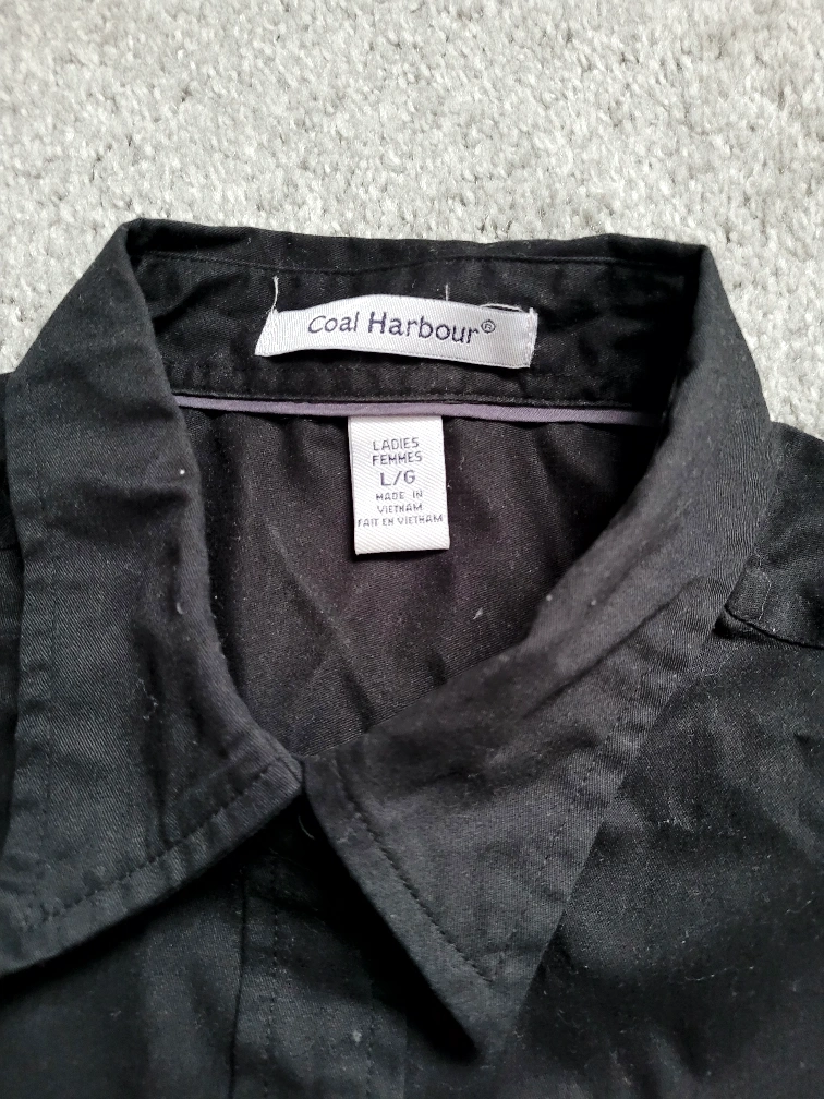 Selling a Coal Harbour button-down shirt in black! It's a ladies size L/G and in great condition. Perfect for work or casual wear!