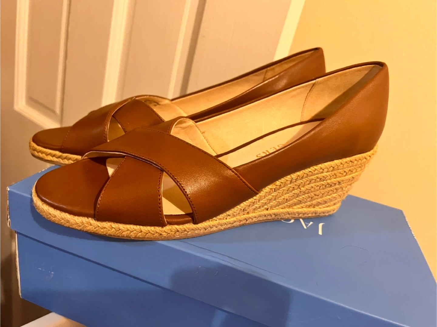 Jack Rogers Women's Brown Leather Wedge Espadrille Sandals