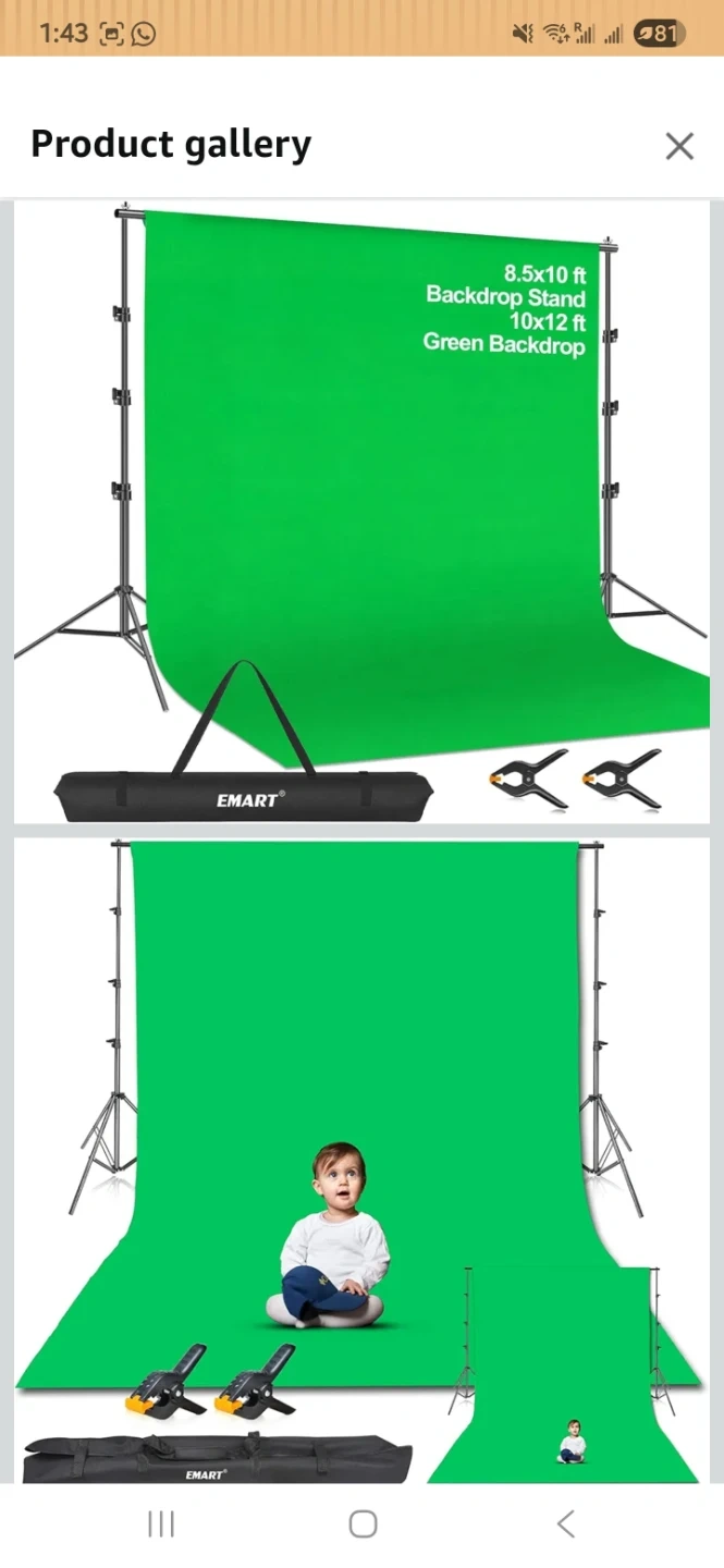Selling an Emart green screen that comes with its carrying bag. It includes the green, white and black screen fabric, the frame, and the carrying bag. It's in good condition and ready for your video projects!