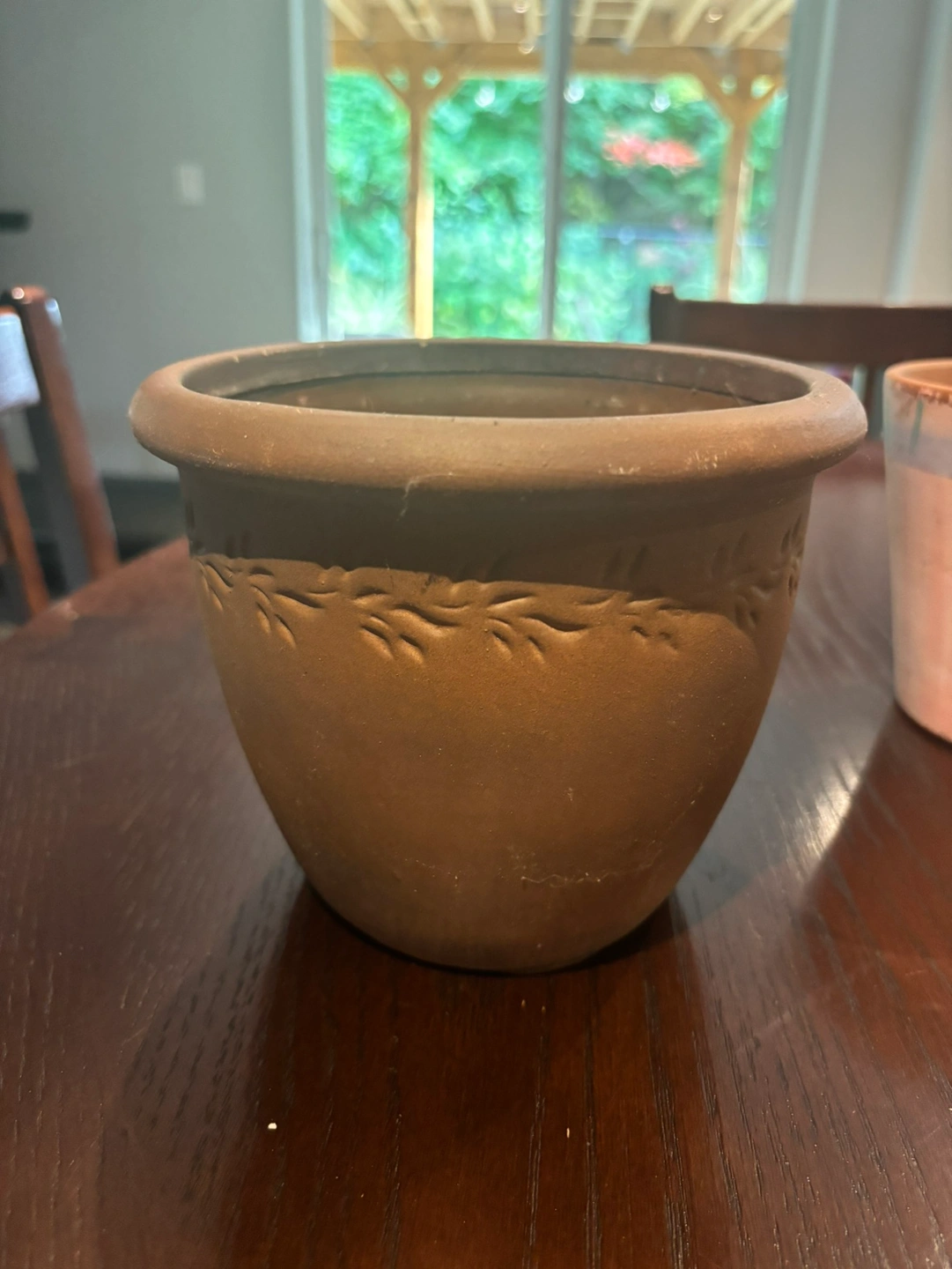 Assortment of terracotta flower pots, perfect for displaying your favourite plants. It is approximately 6 inches in diameter and has a slightly distressed look.
