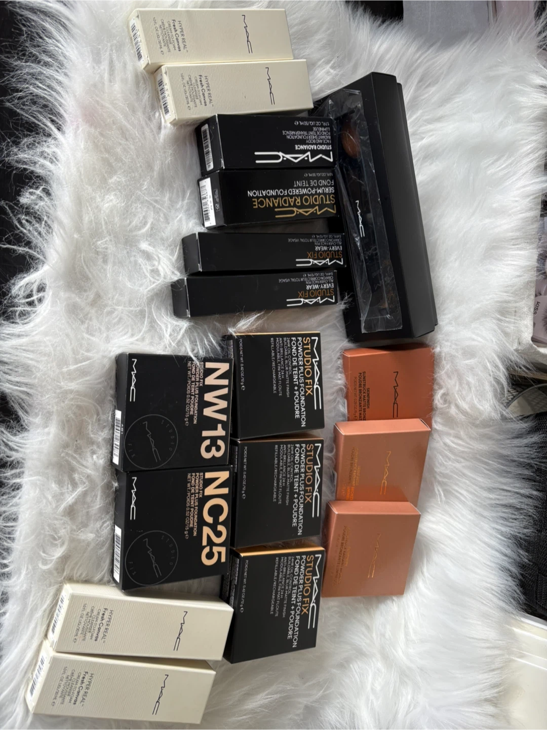 Selling a variety of MAC makeup items, including Studio Fix Powder Plus Foundation in shades NW13 and NC25, Studio Radiance Serum-Powered Foundation, and Hyper Real Fresh Canvas. Perfect for creating a flawless base and a radiant glow!