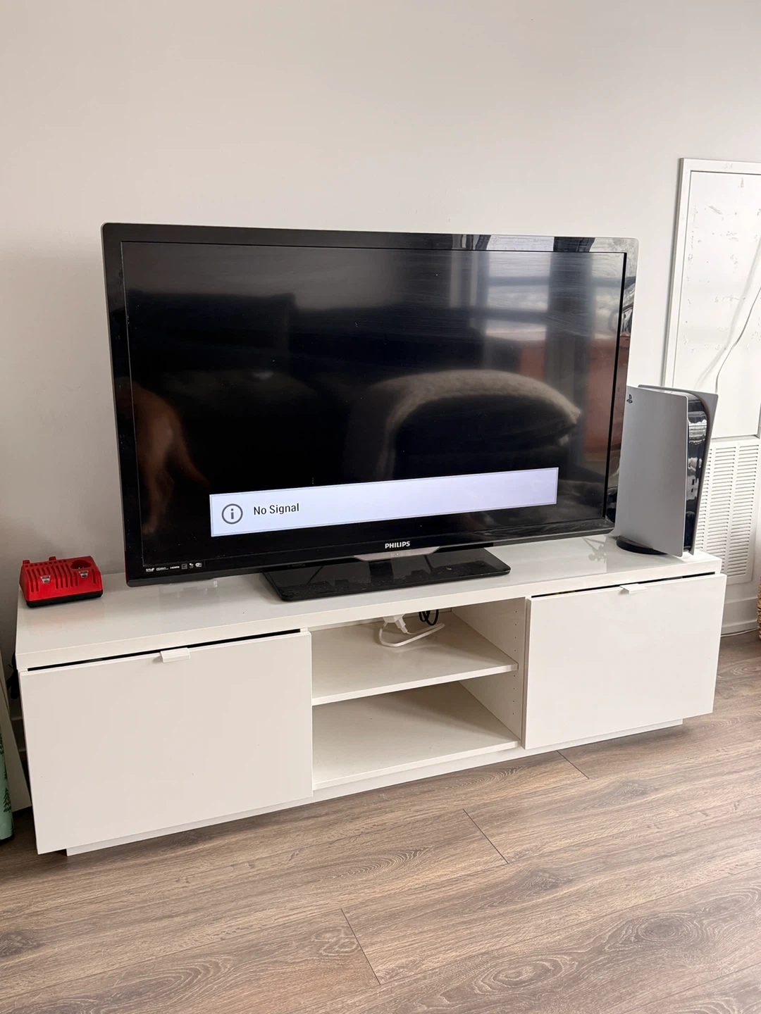 Selling a white IKEA Besta TV unit. It's in great shape and ready for a new home! The unit measures 63 inches (160 cm) in length, 17 3/4 inches (45 cm) in height, and 16 1/2 inches (42 cm) in depth. It features a combination of closed storage with doors and open shelving for your media devices or decor - Retails for $160 before taxes **Only used for a year** ** looking to sell first week of April 2026 **
