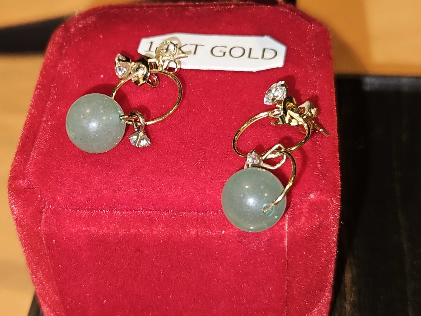 Earrings are about $189.00 10k plus round green jade.