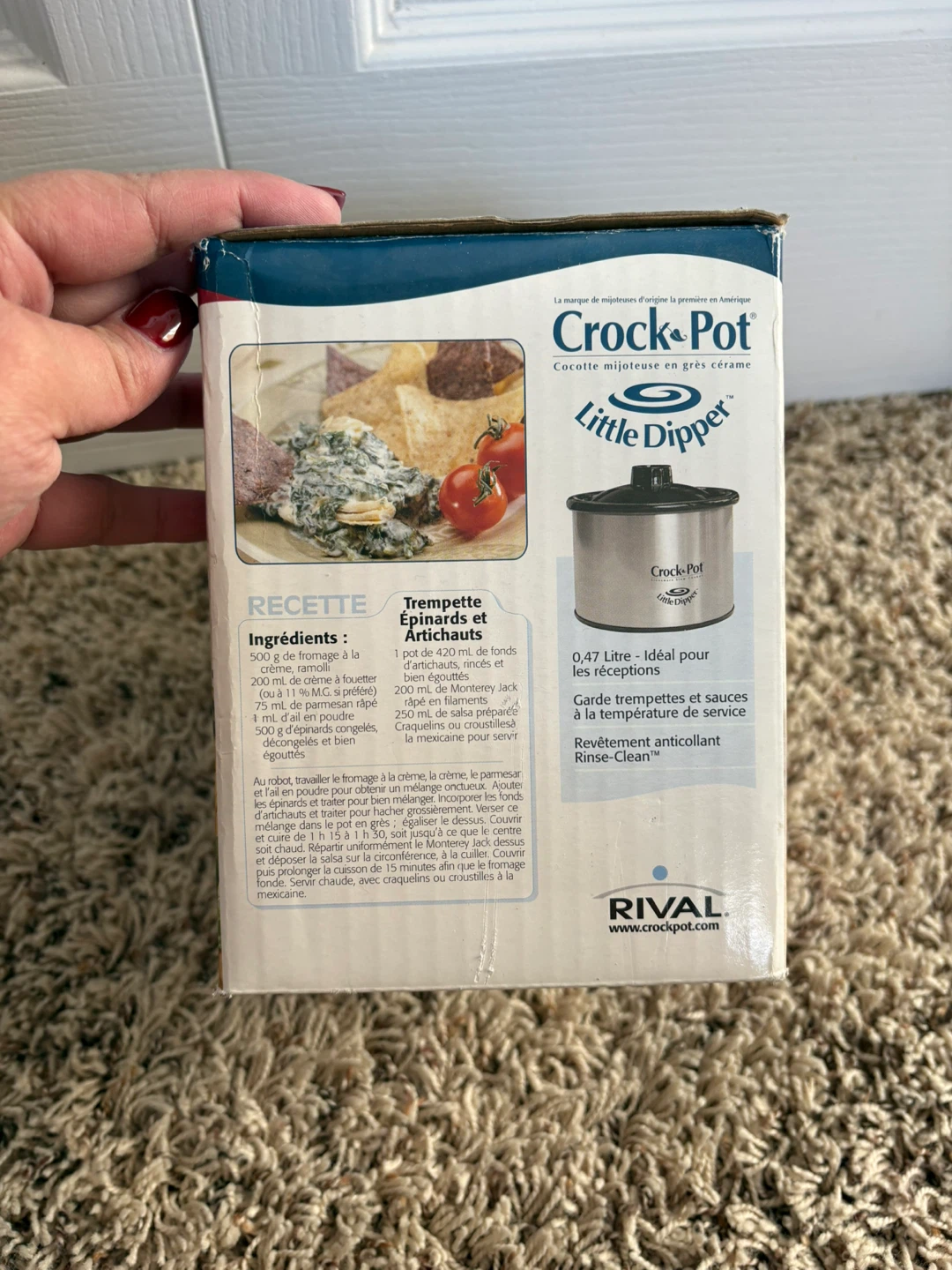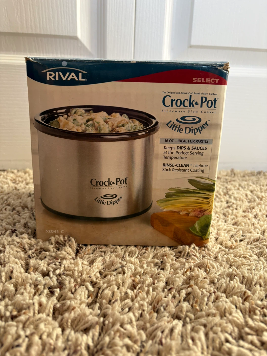 Selling a Rival Crock-Pot Little Dipper stoneware slow cooker. It's perfect for keeping dips and sauces at the perfect serving temperature. It's 16 oz, ideal for parties. The coating is Rinse-Clean lifetime stick resistant. Box included!