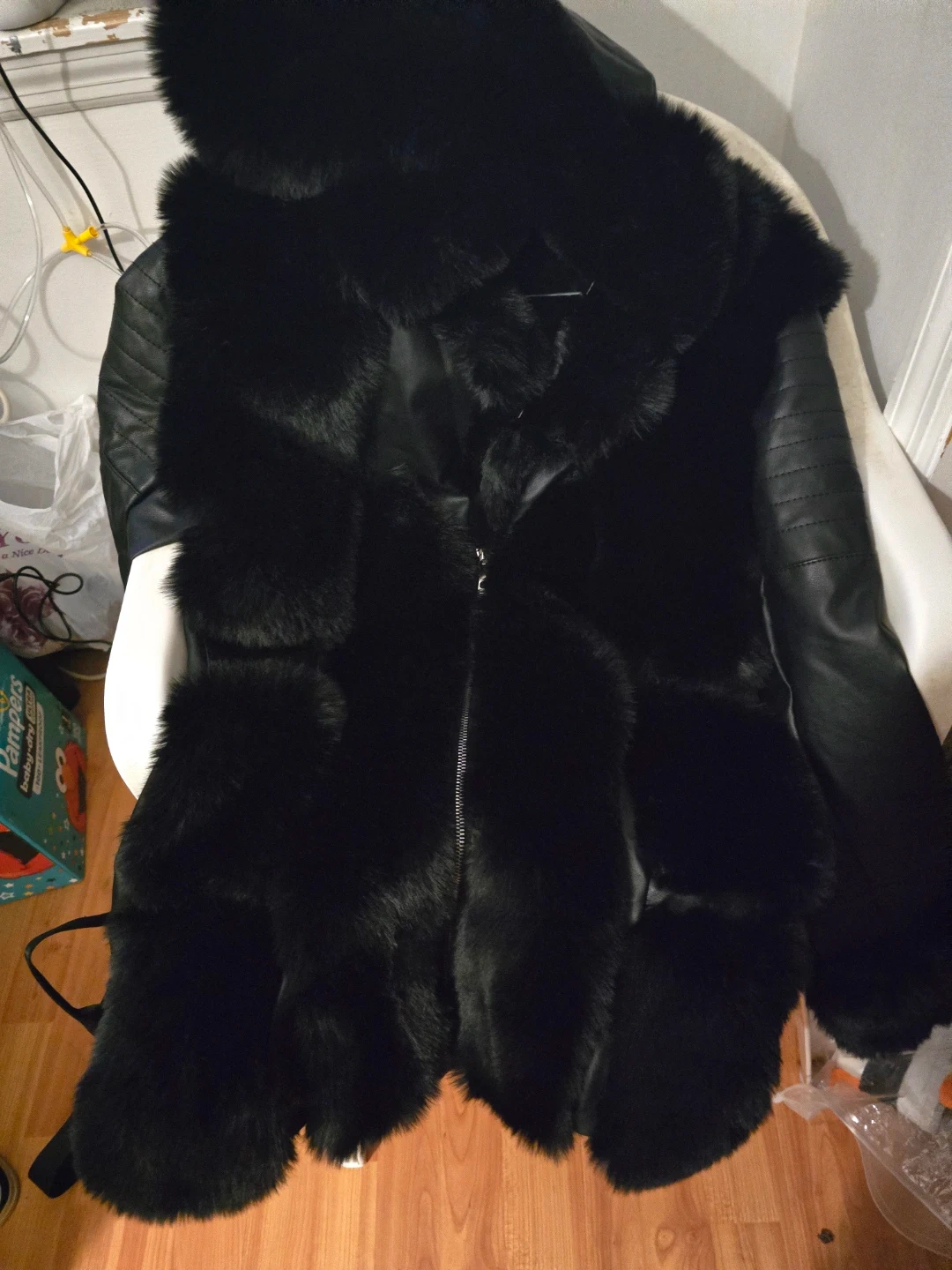 Stylish black jacket featuring fur and leather accents! Perfect for adding a touch of elegance to your wardrobe
