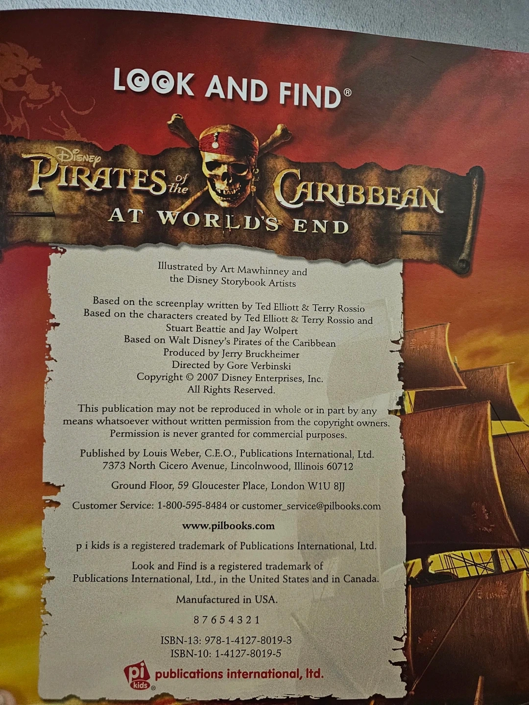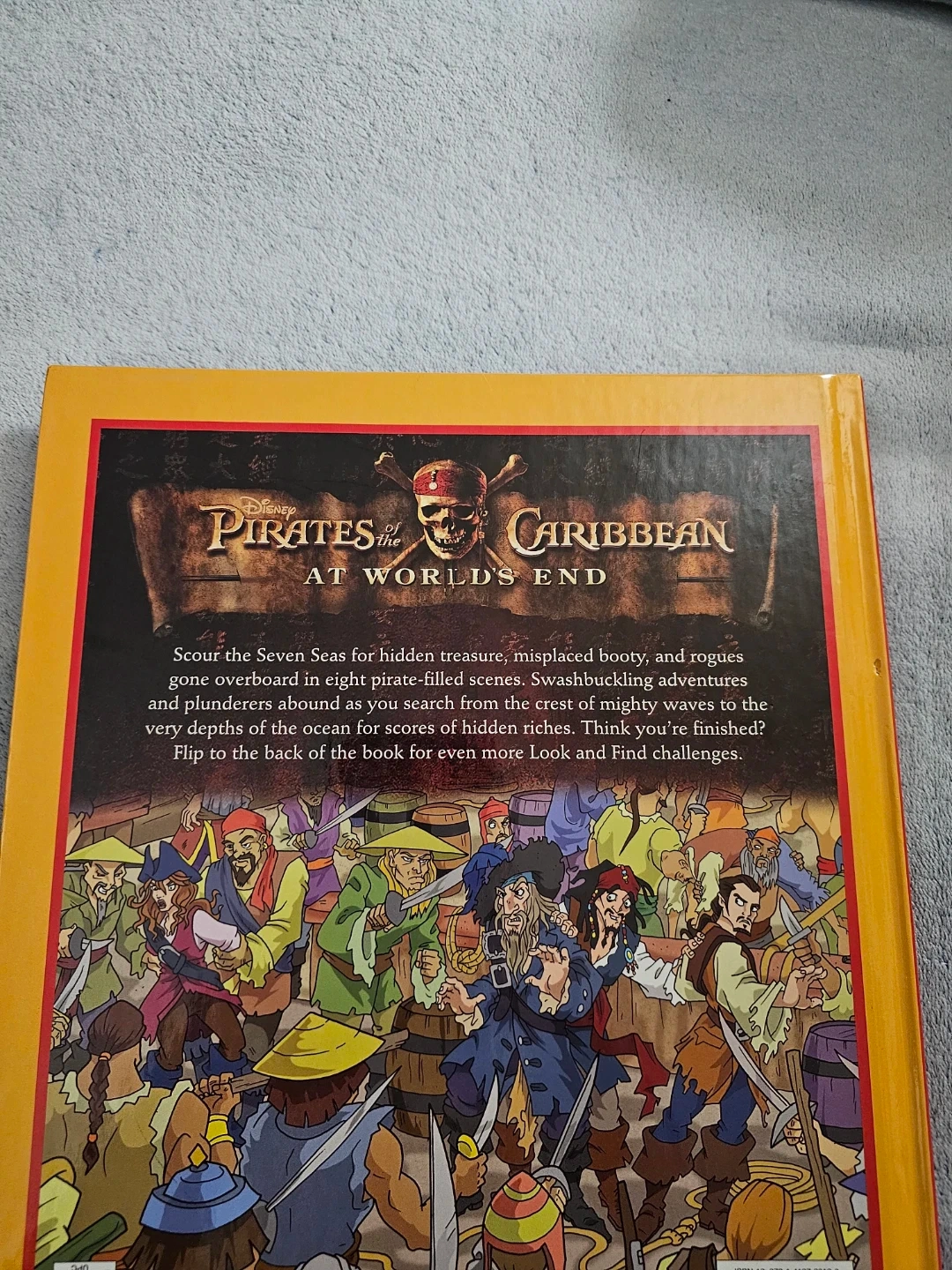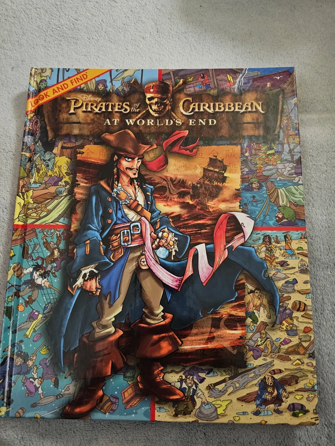 Selling a brand new Disney Pirates of the Caribbean: At World's End Look and Find book! It's a fun book where you can search for hidden treasure and go on pirate adventures. Flip to the back for even more Look and Find challenges too.