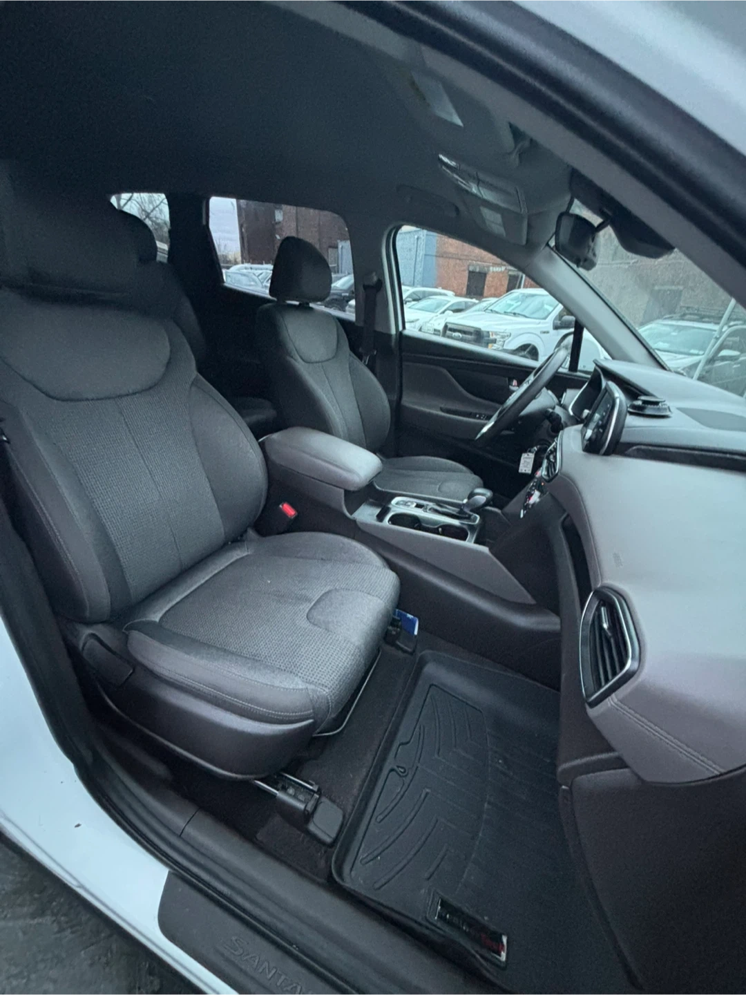 Selling a white Hyundai Santa Fe SUV. It's in great condition and ready for a new owner!