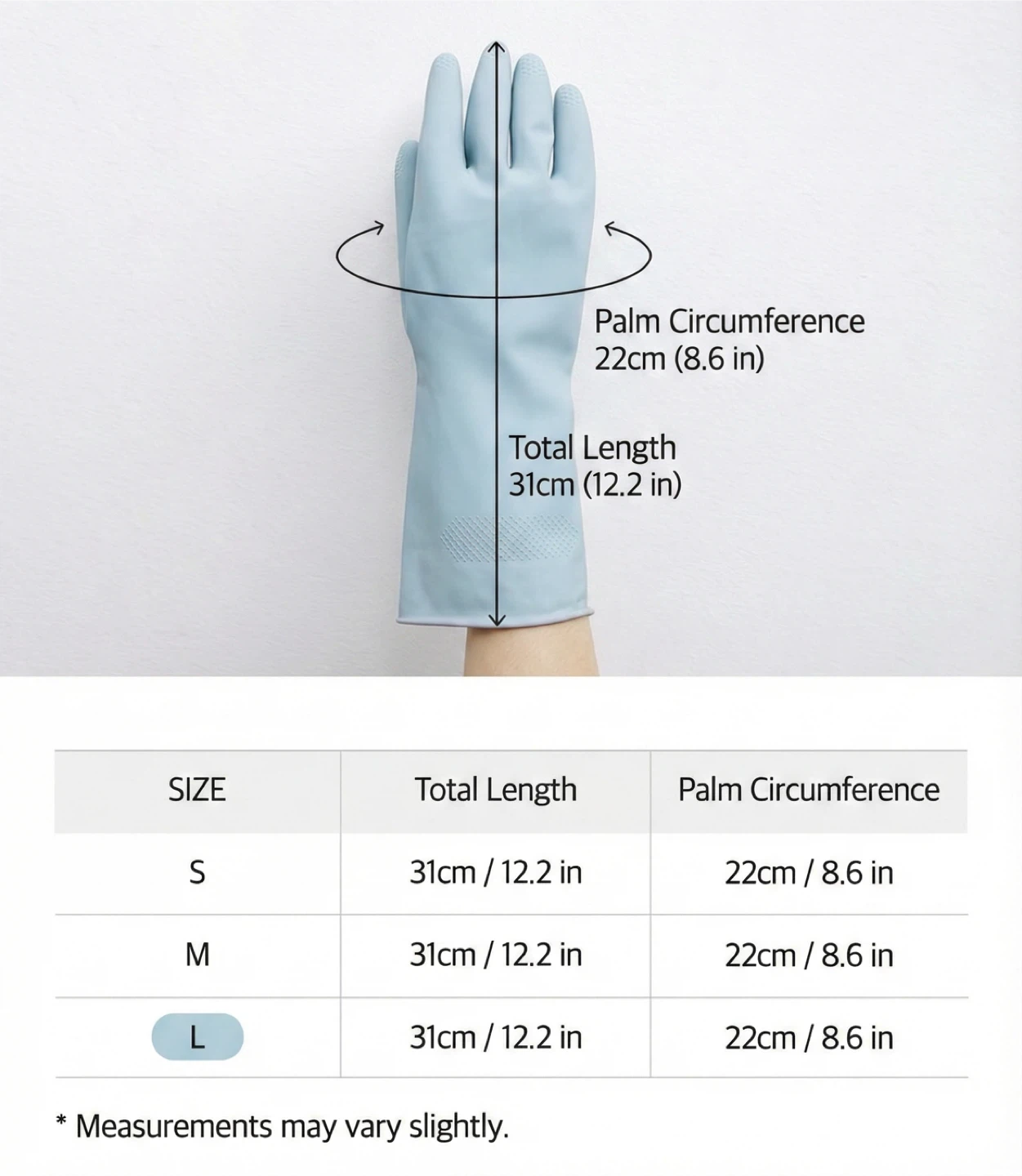 Premium Korean Rubber Gloves - Ash Blue (Large) - Extra Durable