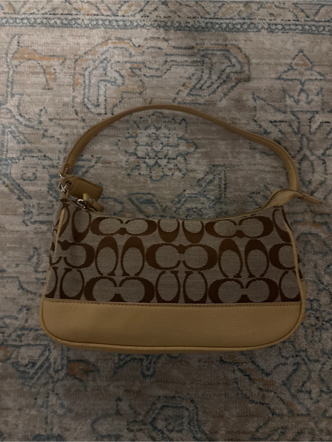 Selling a cute Coach Signature Demi Baguette bag! It's in great condition and features the classic Coach logo pattern. Perfect for adding a touch of style to any outfit