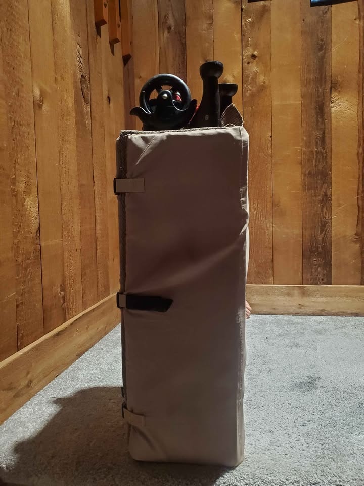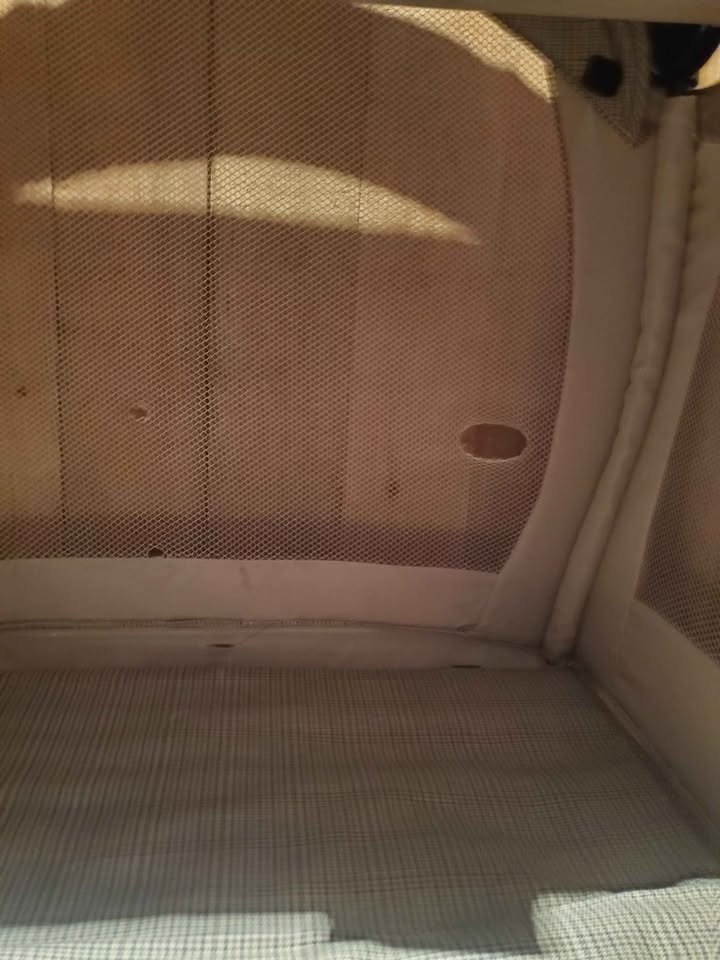 There are two holes in the screen. It packs up neatly, just have to carry the change table attachment.