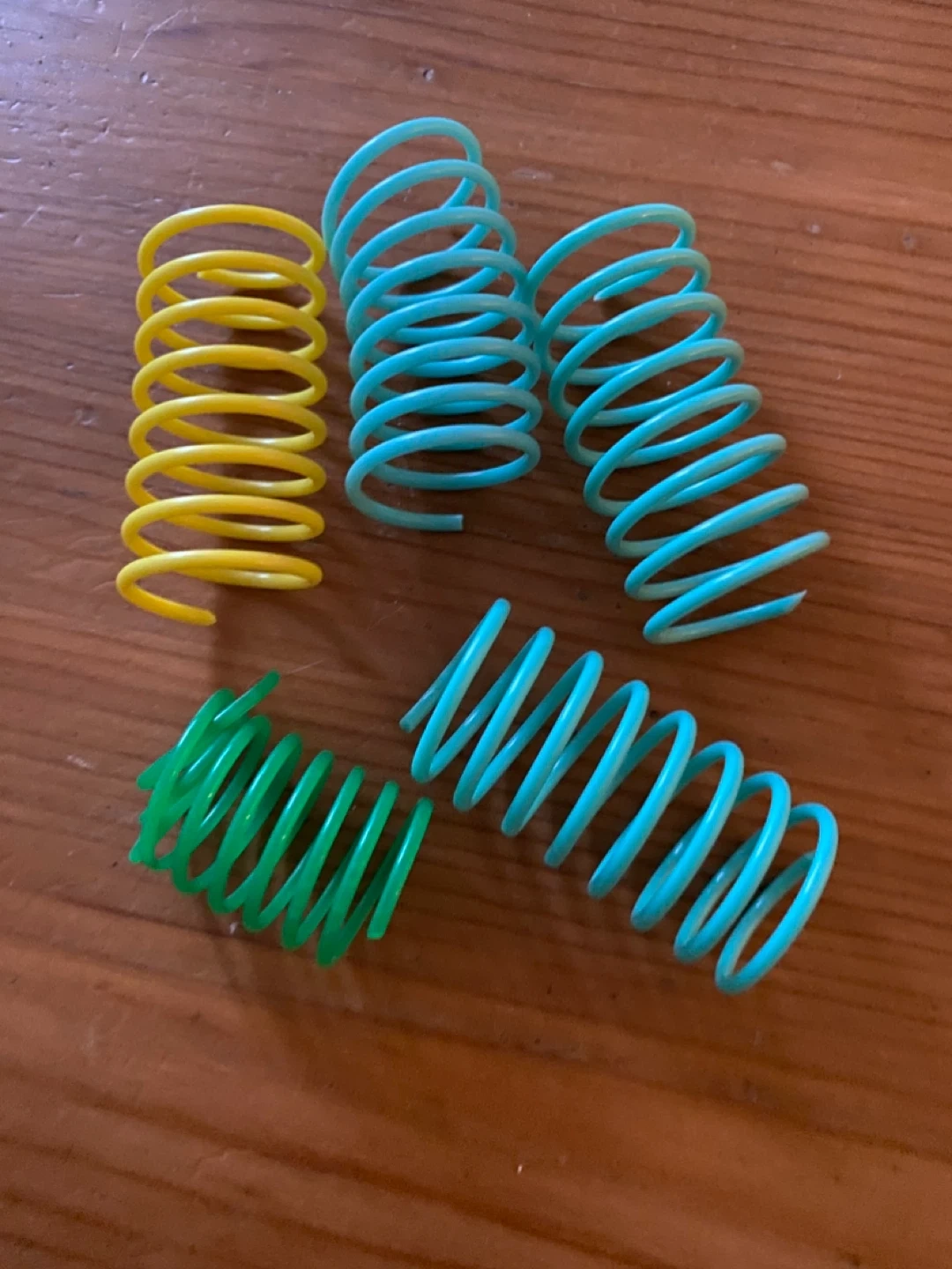 These colourful cat coil springs are perfect for keeping your kitty entertained! They're lightweight and fun to bat around, providing hours of playful activity. The set includes a mix of blue, yellow, and green springs🧡