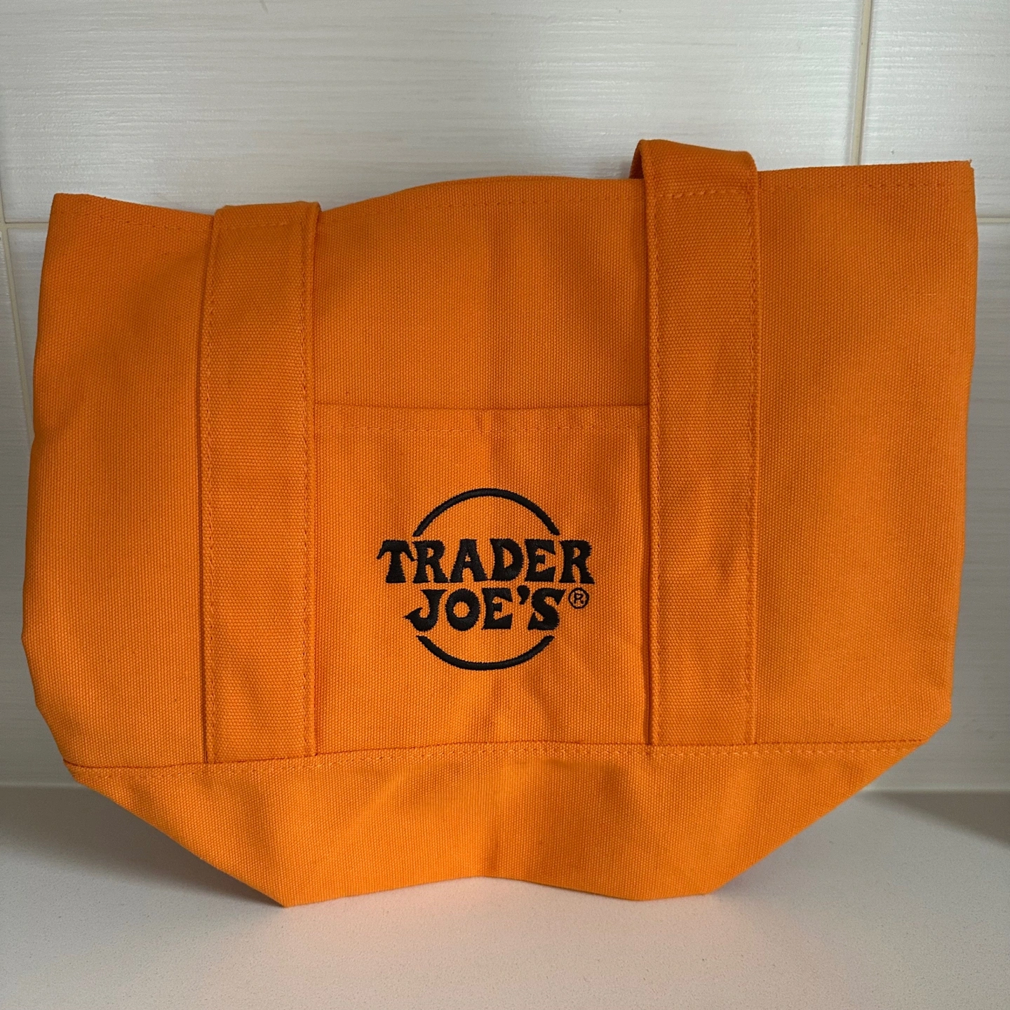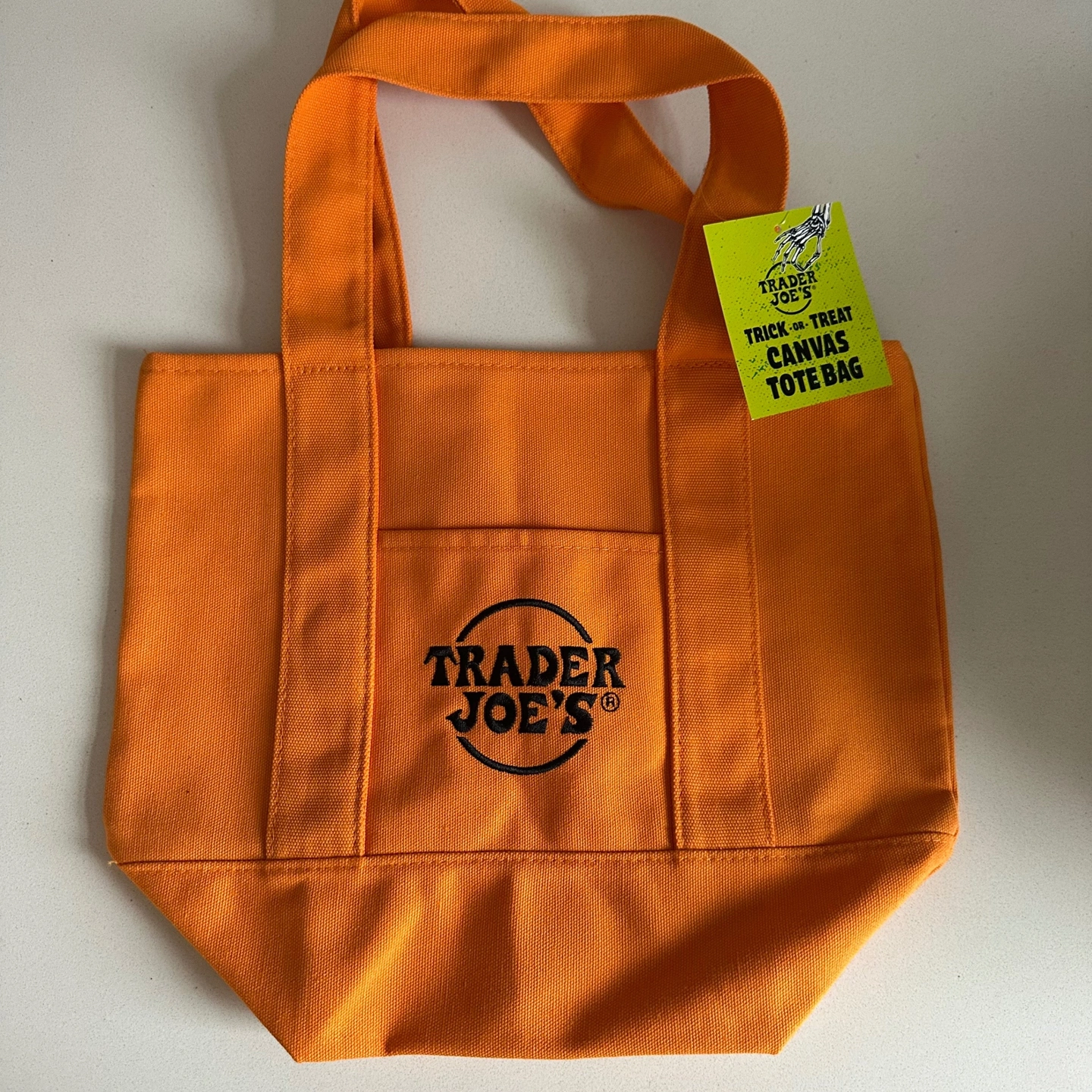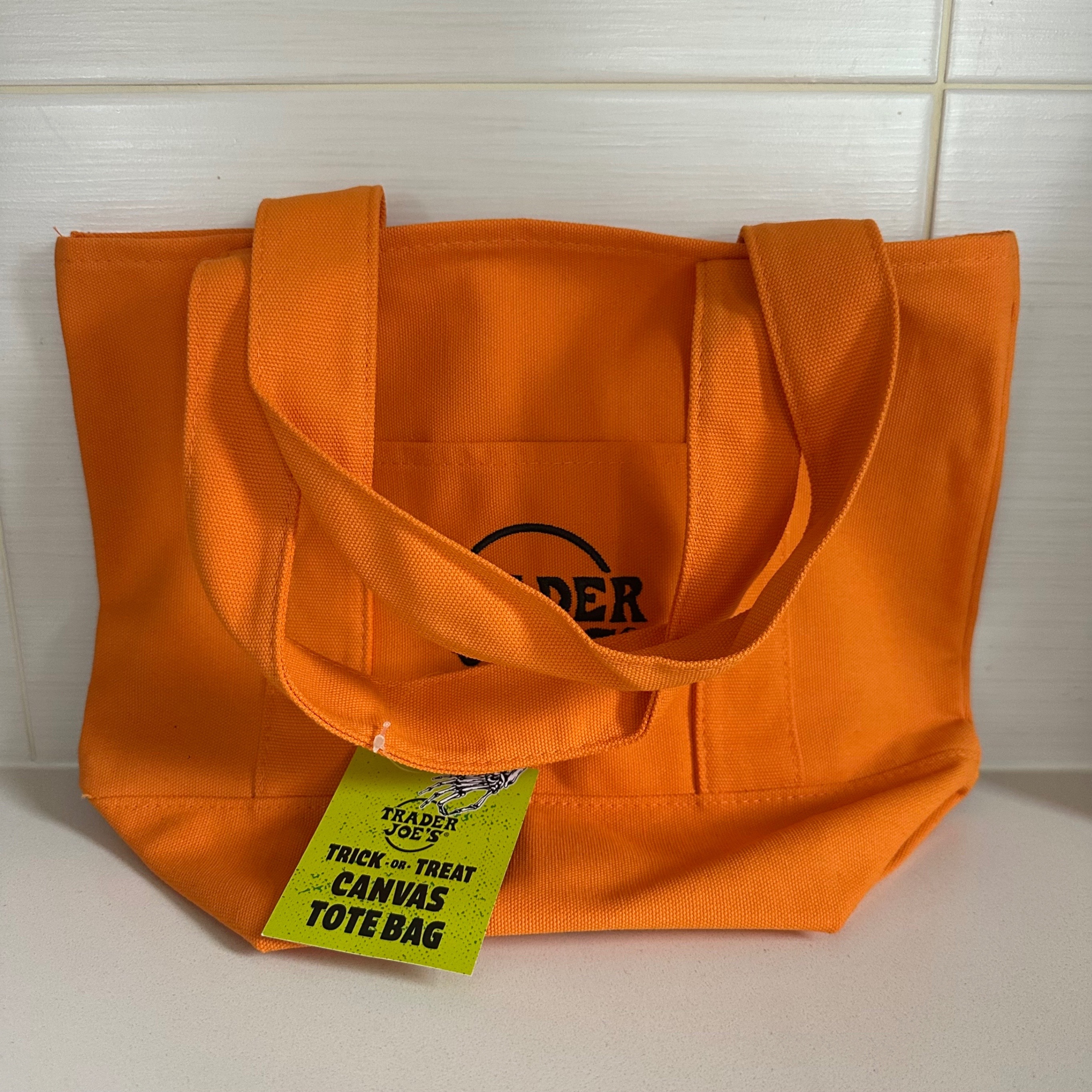 Brand new, never been used (tag attached) Trader Joe's mini canvas tote bag. Colour is orange with embroidered black Trader Joe's logo. Ideal for adventures, seasonal gifting, quick grocery runs, lunch bags, every day essentials or any small haul that needs a sturdy, reusable carrier.
