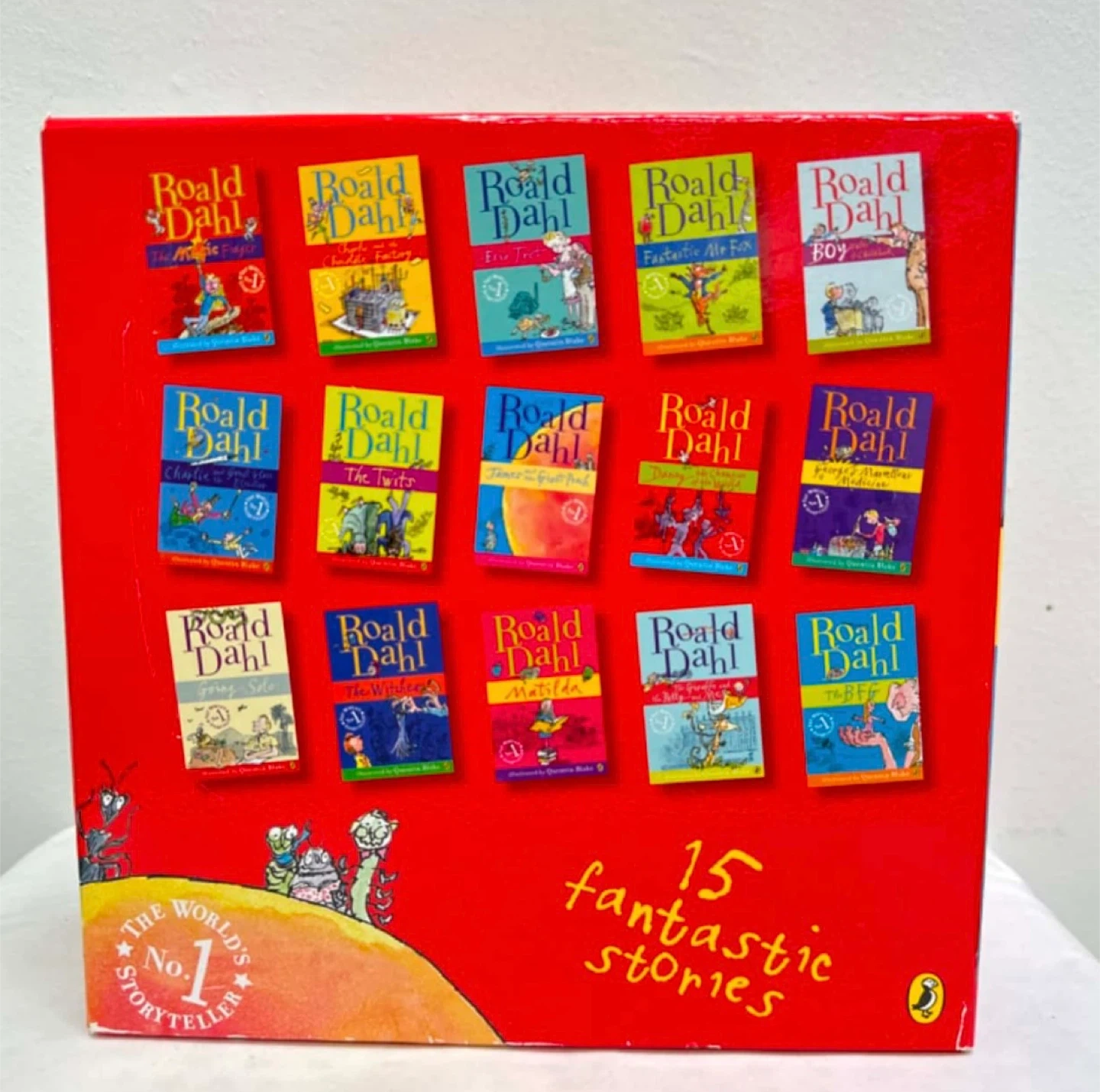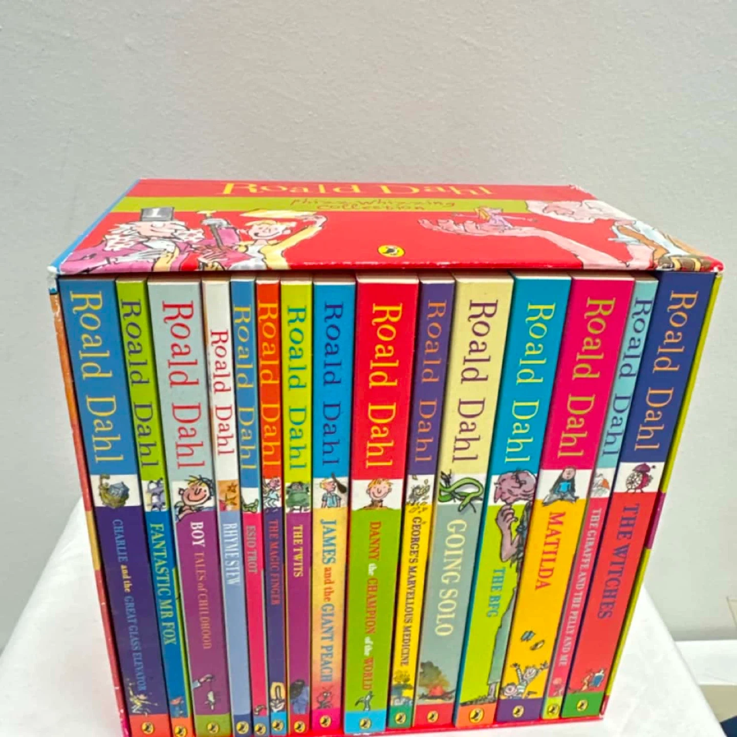 Selling a complete set of Roald Dahl's Phizz-Whizzing Collection! This includes 15 fantastic stories in one box. Perfect for young readers and fans of Dahl's imaginative tales. Includes titles like: - Charlie and the Great Glass Elevator - Fantastic Mr. Fox - Boy Tales of Childhood - Esio Trot - The Twits - James and the Giant Peach - Danny Champion of the World - Going Solo - The BFG - Matilda - The Witches - The Giraffe and the Pelly and Me - George's Marvellous Medicine - The Magic Finger - The Wonderful Story of Henry Sugar The collection has sat on a bookcase and never read, as we had other copies of these titles. Could be gifted, if desired. Retails for over $100. Pick up from a smoke free home near Browns Line & Lakeshore Boulevard in Etobicoke (Toronto/Mississauga).