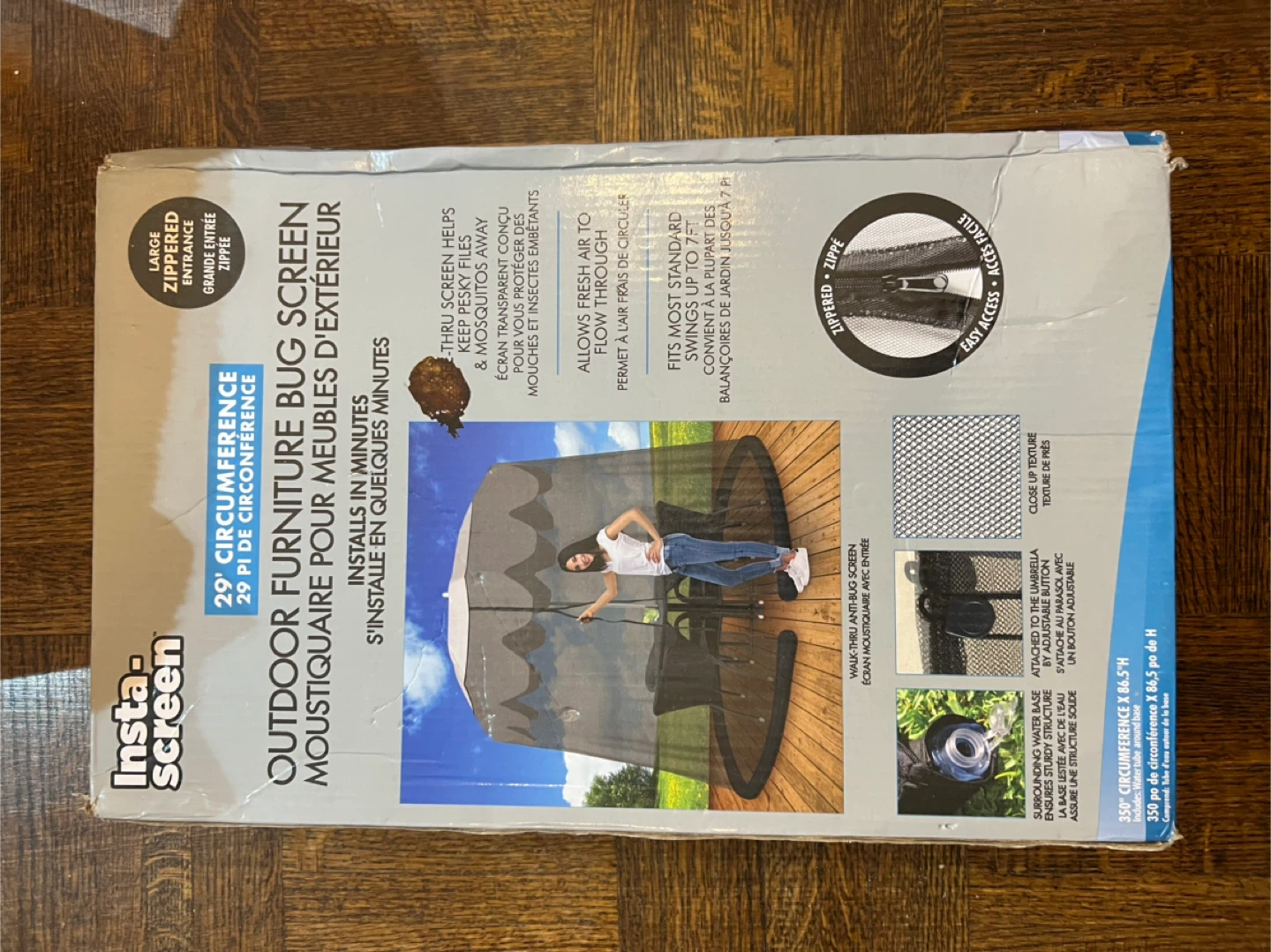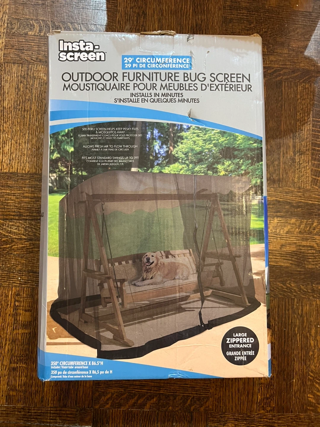 Keep those pesky bugs away with this Insta-Screen outdoor furniture bug screen! It installs in minutes and fits most standard swings up to 7ft. It has a large zippered entrance for easy access. The screen is pet friendly, too!