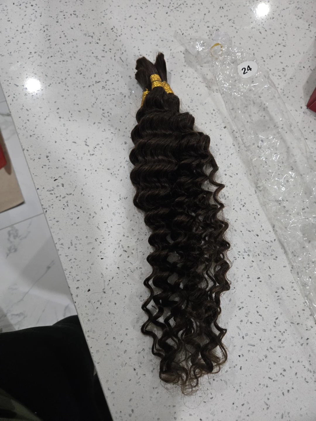 Selling deep wave hair extensions, perfect for adding volume and length! These are a beautiful brown colour and come in a 24-inch length. The bundle weighs 150g, so it's a good amount for a full head. They're in great condition and ready to be styled